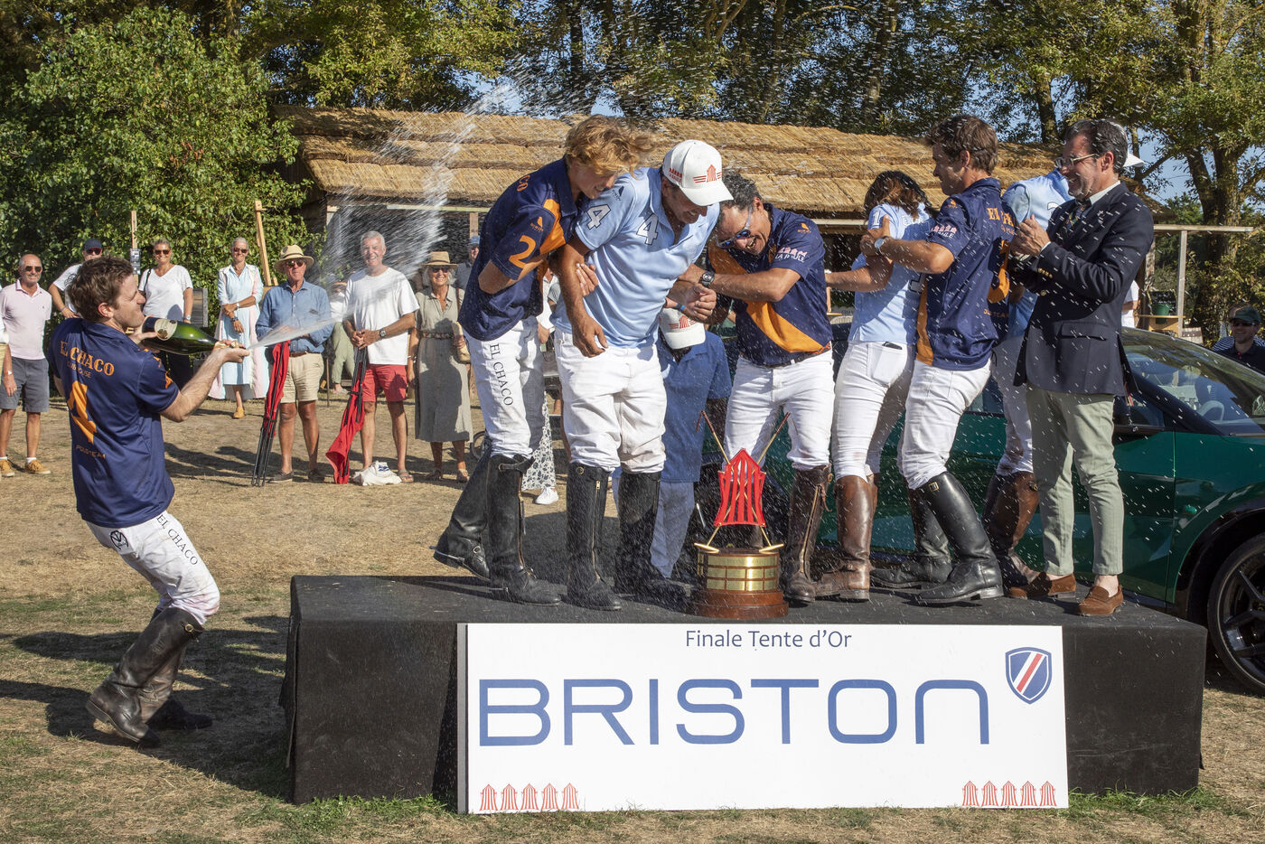 The El Chaco polo team won the Tente d'Or-Briston Trophy final against Epona, with a score of 8-7 after extra time at the Brittany Polo Club in Guérande-La Baule, France, on Sunday, August 10, 2025. In the semifinals, El Chaco defeated Los Pachas 9.5-5 and Epona defeated the Brittany Polo Club 7-6.5. Photography by Caroline Paux / Hans Lucas