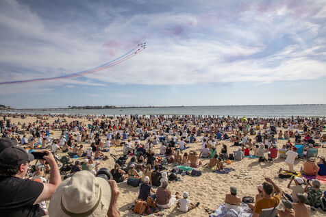 This event marked the end of summer in Pornichet and along the Loire coast: the fifth edition of Pornichet Plein Vol, France's largest air show, flew over La Baule Bay, one of the most beautiful bays in the world, on Saturday, August 23, 2025. The highlight was the maneuvers of the Patrouille de France's Alpha jets, a demonstration of the Dauphin 35F helicopter, the Airbus A400M Atlas, the ATL2 maritime patrol aircraft, the French Air and Space Force aerobatic team, and the Phoenix parachute team. Photography by Caroline Paux / Hans Lucas