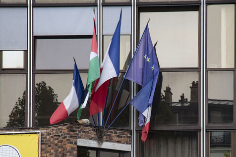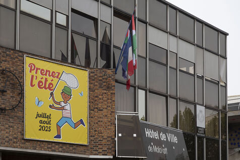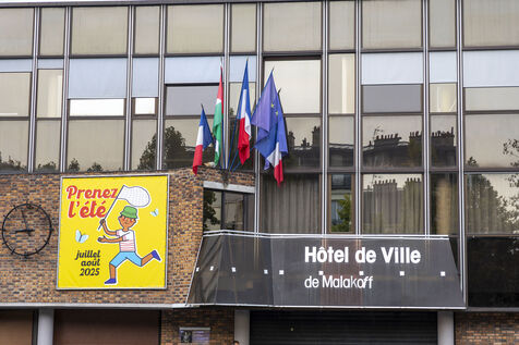 The Palestinian flag hoisted on the front of the town hall between the French and European flags in Malakoff in France on Saturday, September 20, 2025. The prefect of Hauts-de-Seine, following instructions from the Ministry of the Interior, asked the mayor, Jacqueline Belhomme, to remove the flag, failing which he would urgently refer the matter to the administrative court of Cergy-Pontoise on grounds of secularism.