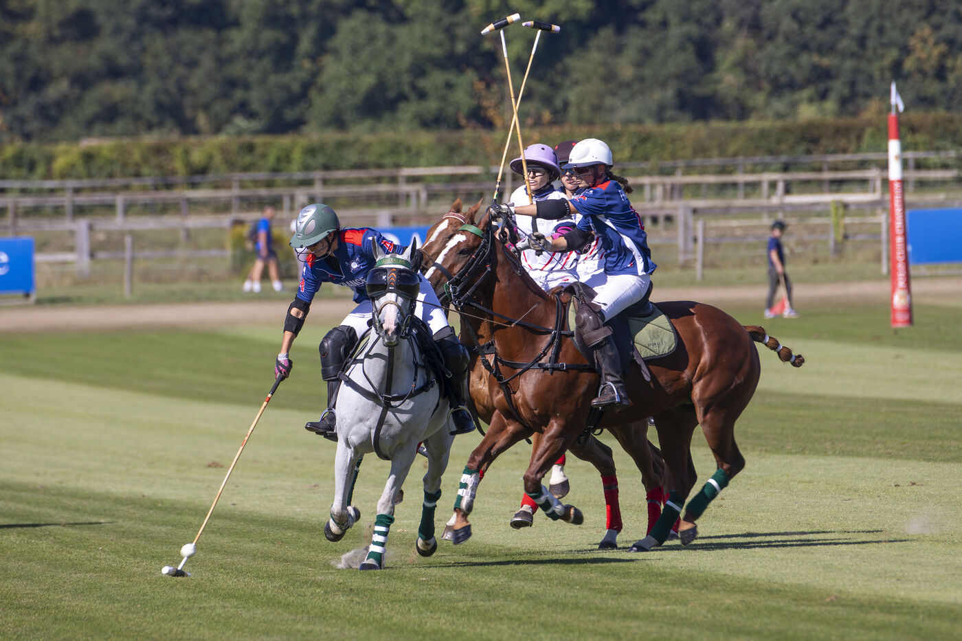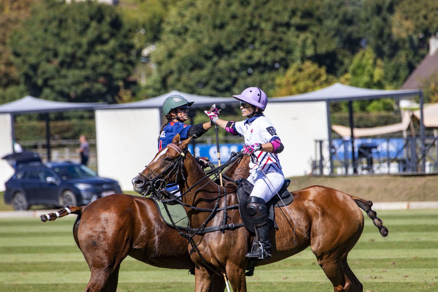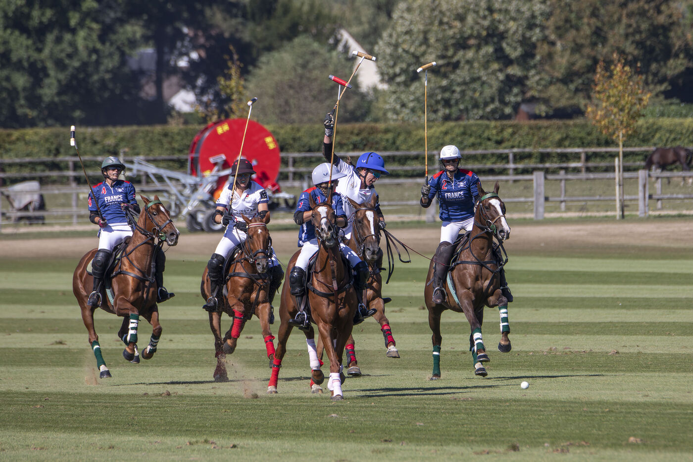Test match between the French women's polo team and England at the Polo Club du Domaine de Chantilly in Appremont, France, on Friday, September 18, 2025. The French women played a strong game and pulled off a surprise victory, beating their opponents 6.5 to 5 in an impressive feat. Photo by Caroline Paux / Hans Lucas