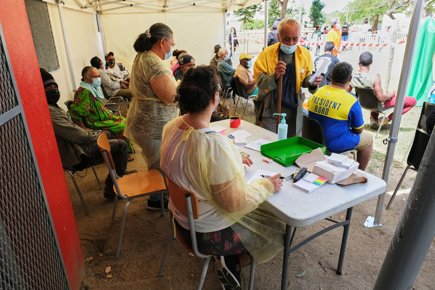 Noumea, New Caledonia, 2021-09-24. A COVID-19 vaccination center has been set up on the outskirts of Tours Magenta in the northeast of the city of Nouméa. In recent weeks, New Caledonia has lost its covid-free status and the virus is progressing rapidly across the territory. The government of New Caledonia has set up an intense vaccination campaign, in the cities and in the bush, to ensure that as many people as possible get vaccinated against Covid-19.