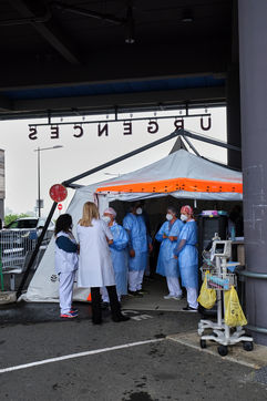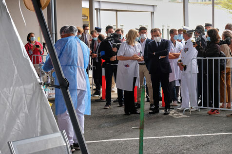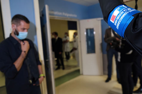 Nouvelle-Calédonie, Nouméa, 2021-10-13. Le ministre des Outre-Mer Sébastien Lecornu est en visite d'Etat en Nouvelle-Calédonie pour évaluer l'ampleur de la crise sanitaire due à la pandémie de COVID-19. Il visite le principal hôpital de Nouméa : le Médipôle de Koutio et rencontre le personnel de santé. Lors de sa visite il leur a assuré du soutien de l'Etat français tant financièrement que sur le plan des renforts humains. La Nouvelle-Calédonie déplore plus de 200 morts en moins de 6 semaines, le territoire ayant réussit à rester Covid-Free jusqu'au 9 Septembre 2021.
