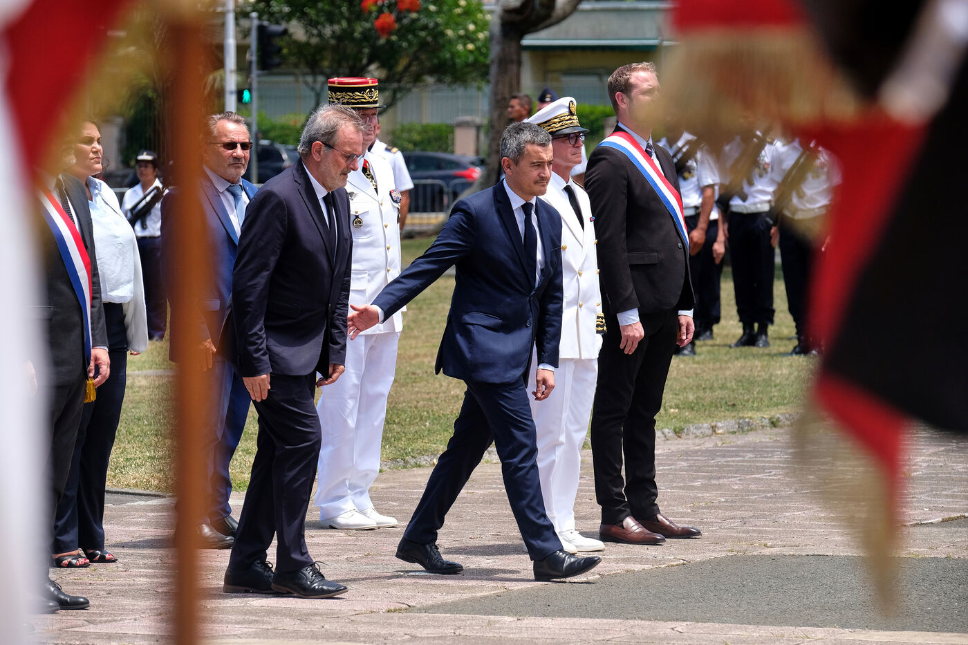 The Minister of the Interior and Overseas Territories Gérald Darmanin and the Minister Delegate in charge of Overseas Territories Jean-François Carenco lay a wreath at Place Bir-Hakeim in Noumea during their first joint official visit to New Caledonia, and then perform a custom welcome ceremony at the Customary Senate.