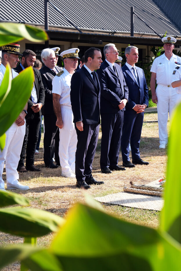 Le Ministre des Armées Sébastien Lecornu exécute une coutume au sénat coutumier de Nouméa à son arrivée dans la ville pour une visite de 5 jours.