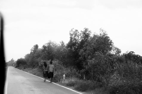 J'étais la personne de passage. Celle qui, à aucun moment, ne s'encre dans le paysage. Comment alors « respecter la juste distance » , celle qui me permet de « respecter l'humanité de l'autre »... (Dominique Baqué, Histoires d'ailleurs, Artistes et penseurs de l'itinérance, Editions du Regard, Paris, 2006)