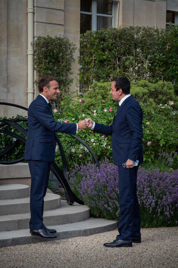 The President of the Republic Emmanuel Macron receives at the Elysee Palace the Prime Minister of the Republic of Kosovo, Mr. Albin Kurti for a meeting.