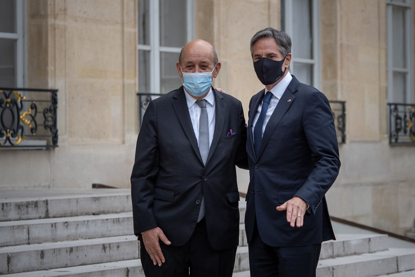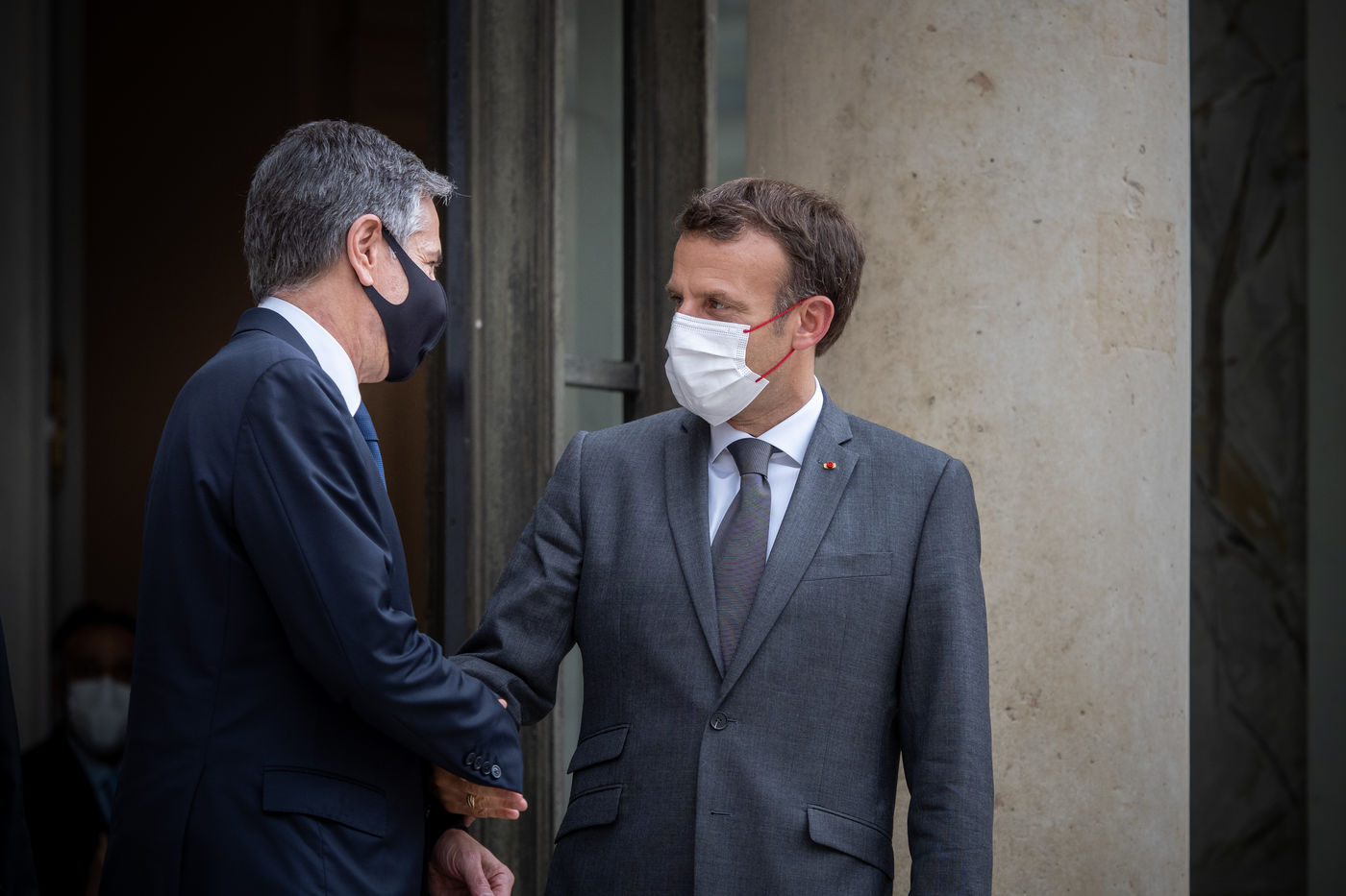 Mr. Antony Blinken, Secretary of State of the United States of America, was welcomed on the steps of the Eysée Palace and met with President Emmanuel Macron.