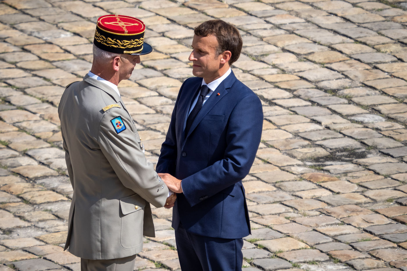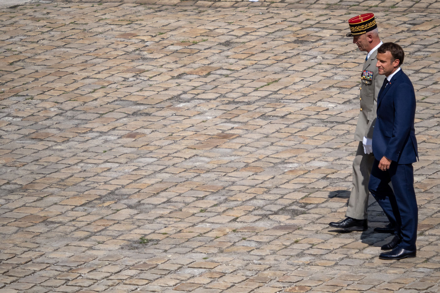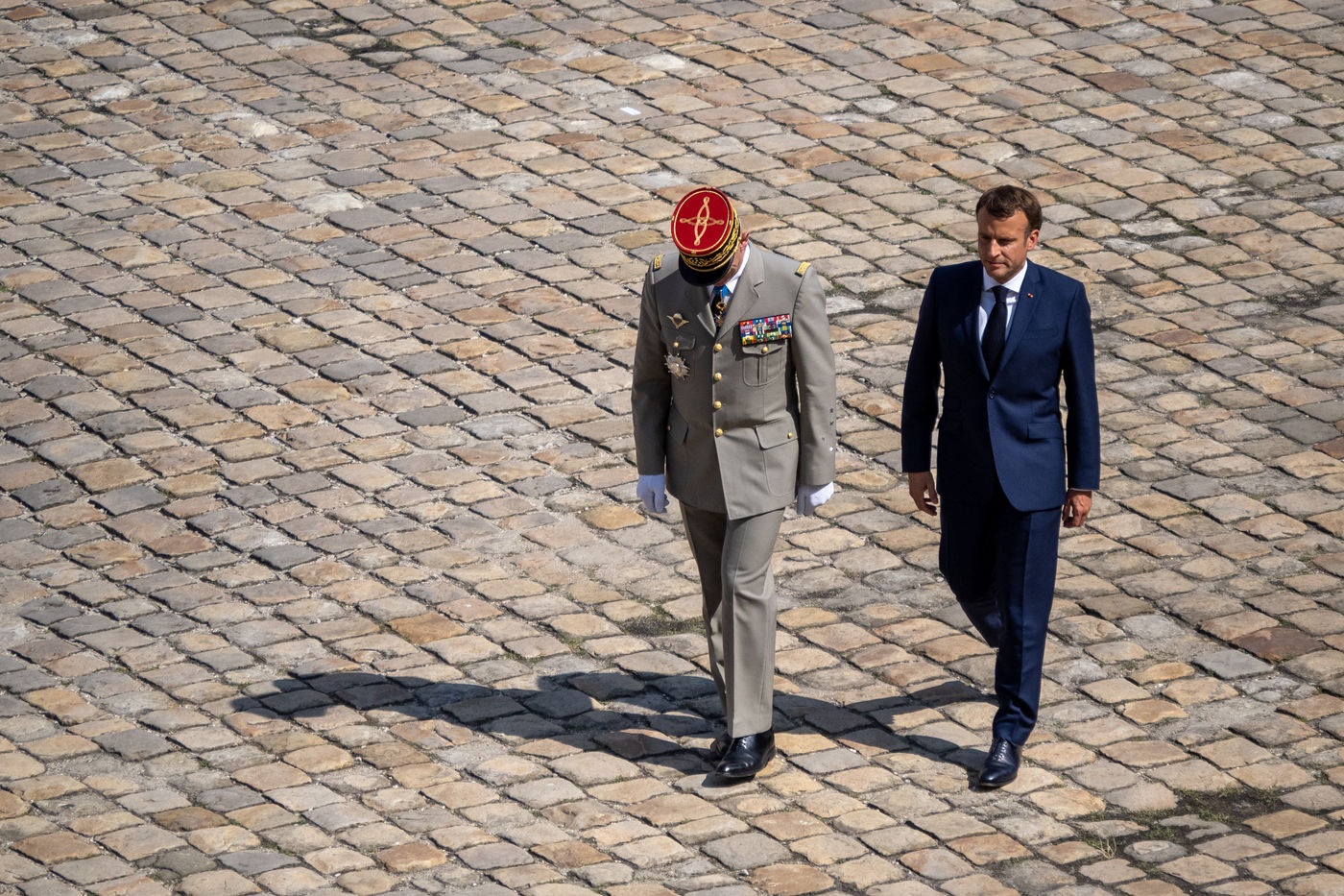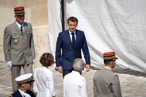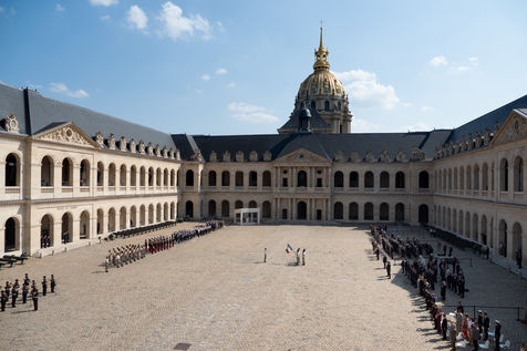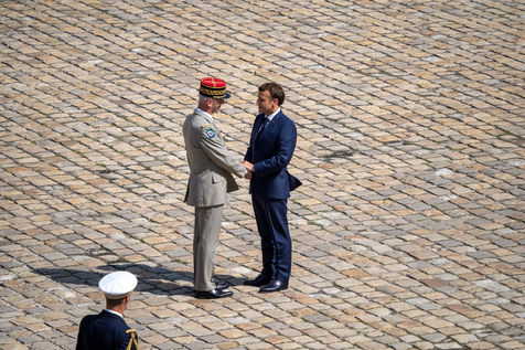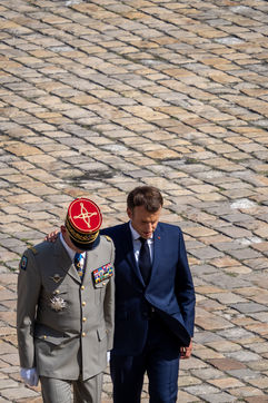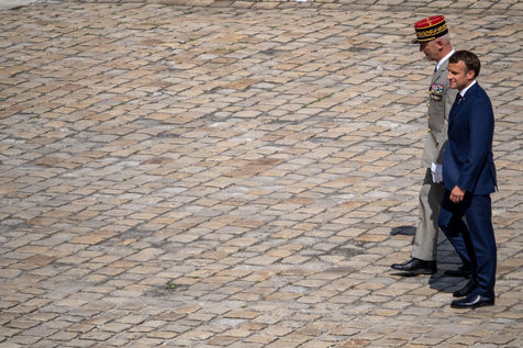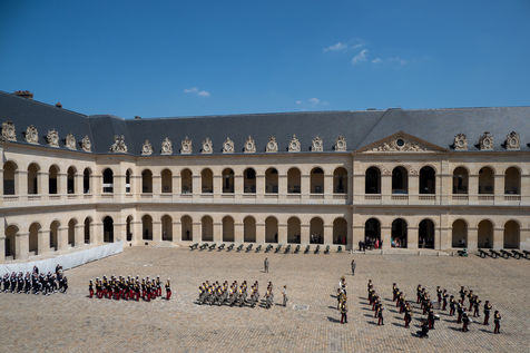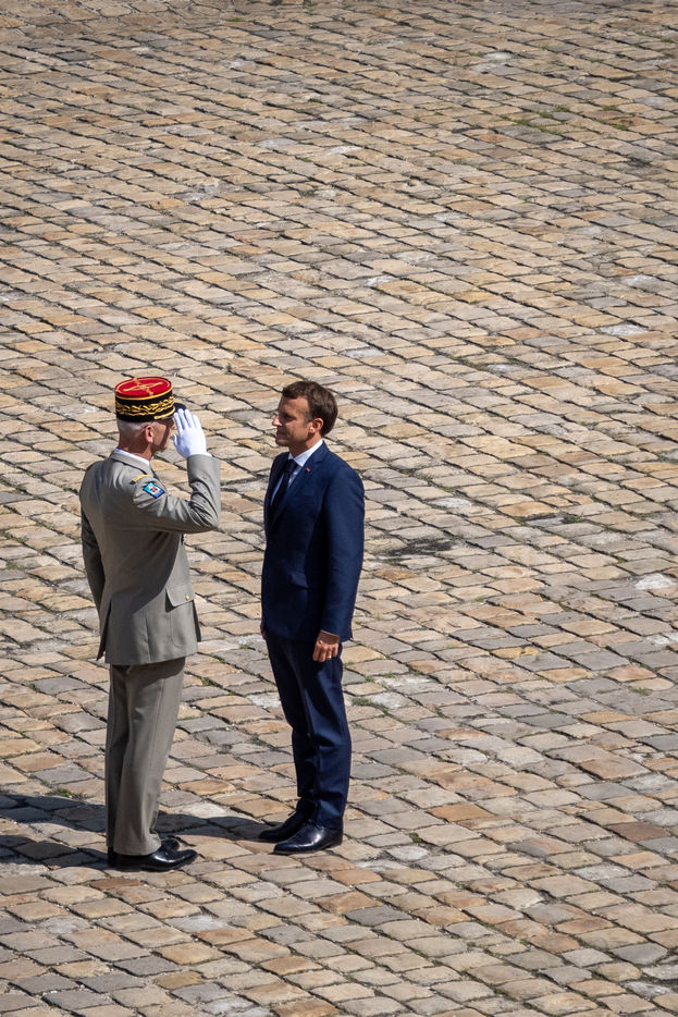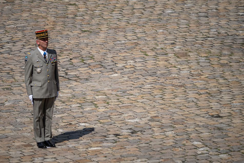 Cérémonie d'Adieu aux armes du Chef d'Etat Major Francois Lecointre, présidée par Emmanuel Macron à l'Hôtel National des Invalides.