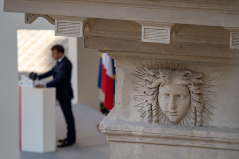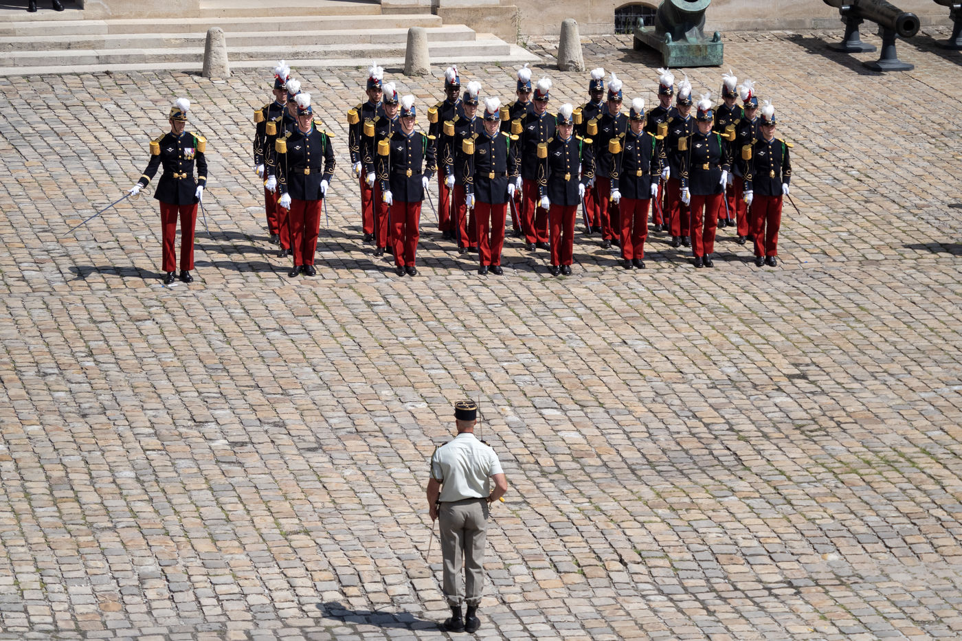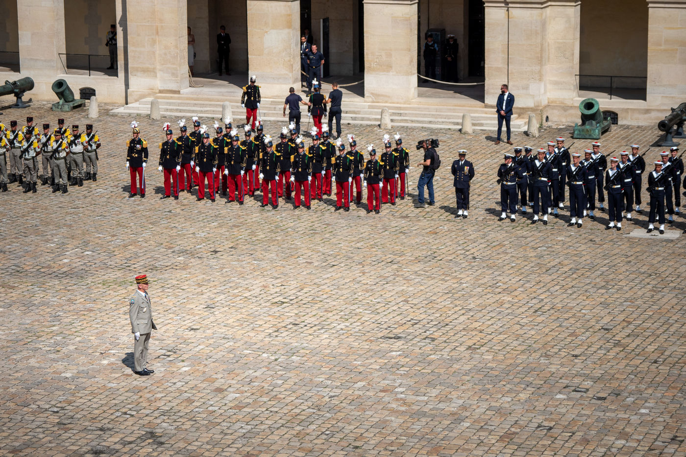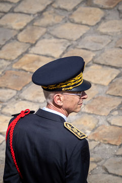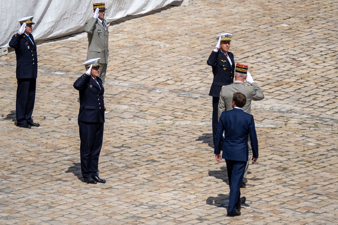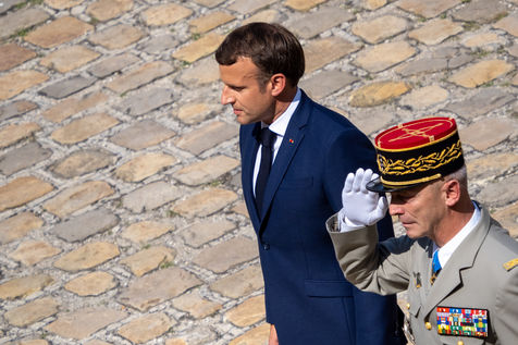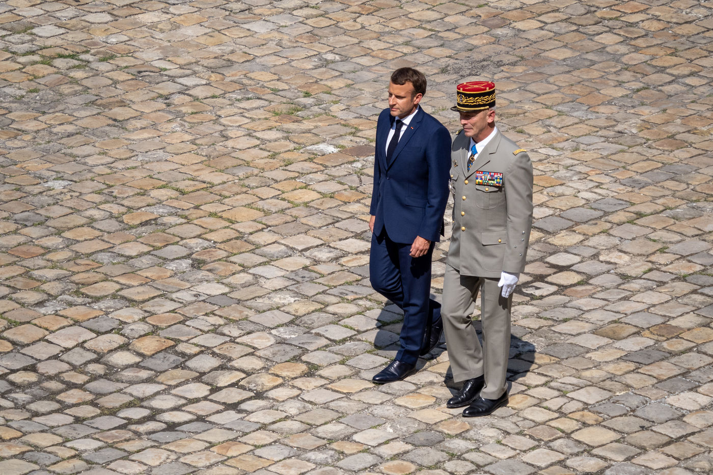 Cérémonie d'Adieu aux armes du Chef d'Etat Major Francois Lecointre, présidée par Emmanuel Macron à l'Hôtel National des Invalides.