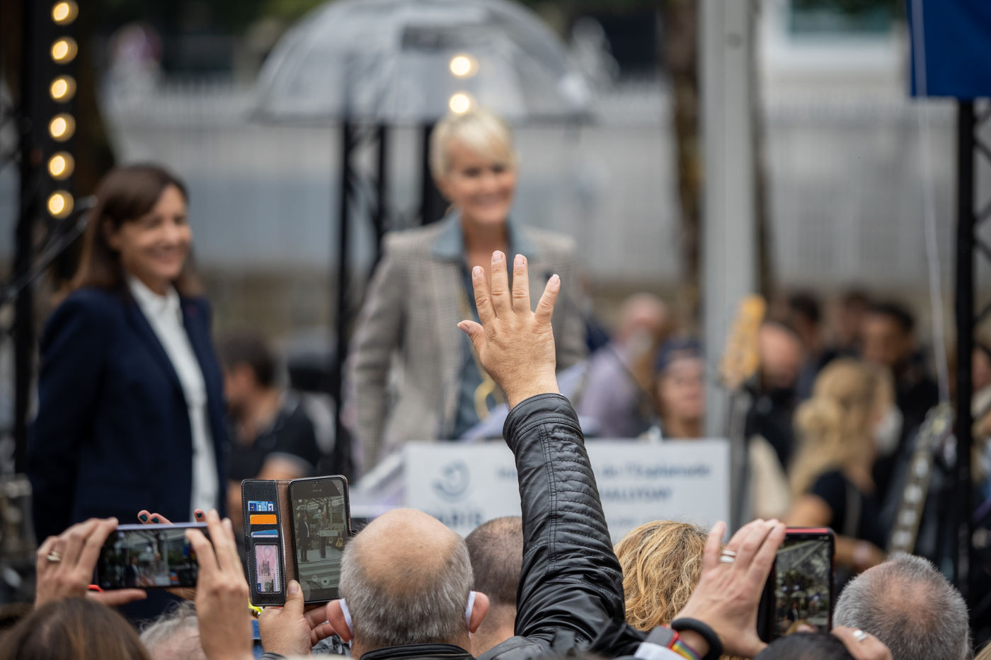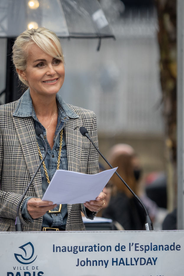 Anne Hidalgo, Mayor of Paris, and Laeticia Hallyday inaugurated the esplanade that bears the name of the singer in front of the Accor Arena in the 12th arrondissement of Paris. The sculpture of Bertrand Lavier entitled Something of..., 6 meters high represents Johnny in a figurative way with a blue granito on the ground as on the walk of fame of Hollywood, a mast representing a guitar neck and a Harley Davidson on top of it.