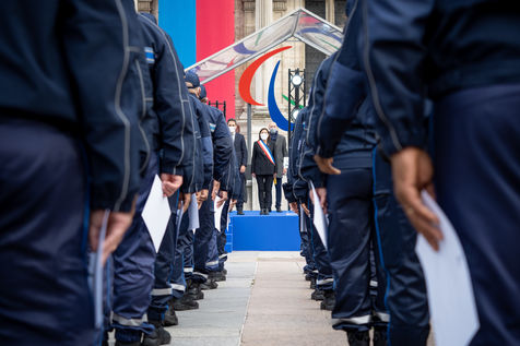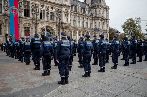 Cérémonie de présentation de la première promotion de la police municipale de Paris formée de 154 agents.