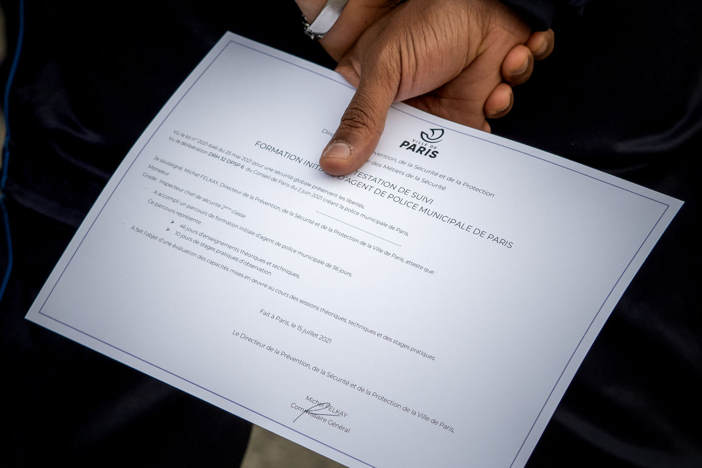 Presentation ceremony of the first promotion of the municipal police of Paris made up of 154 agents.