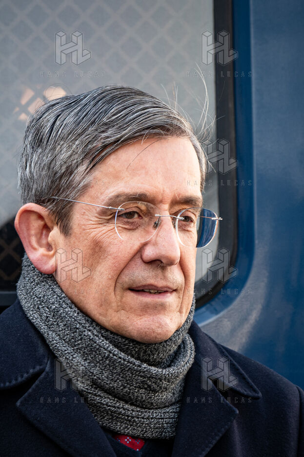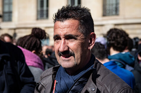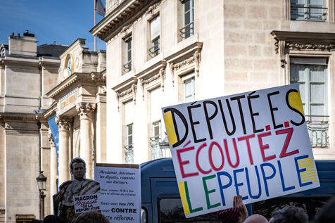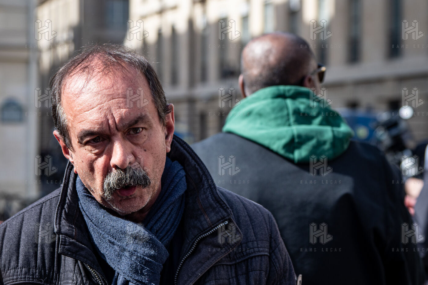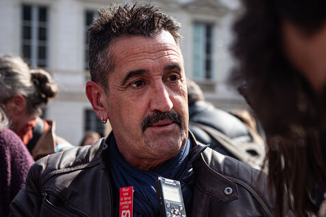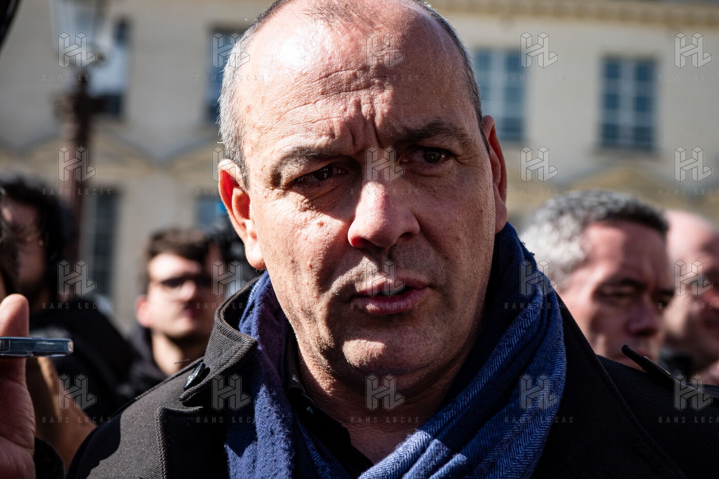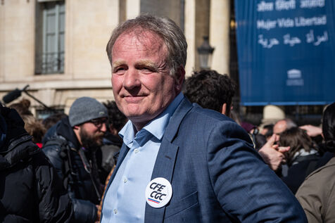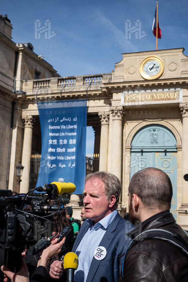 Press conference of the union representatives in front of the national assembly before the announcement of the 49-3.