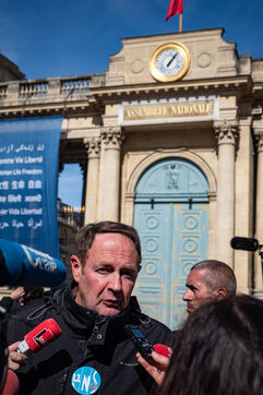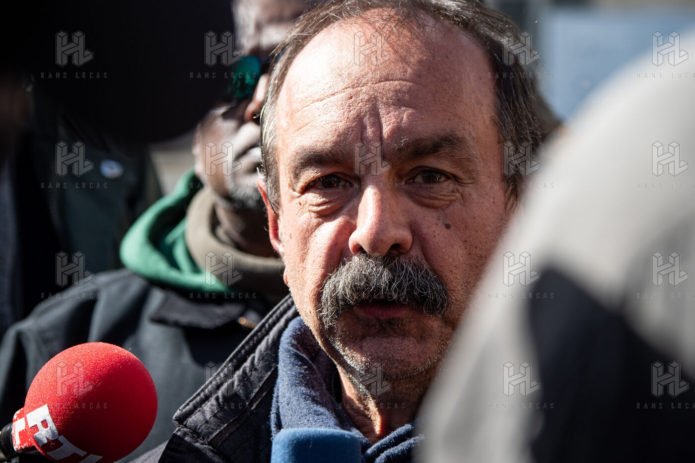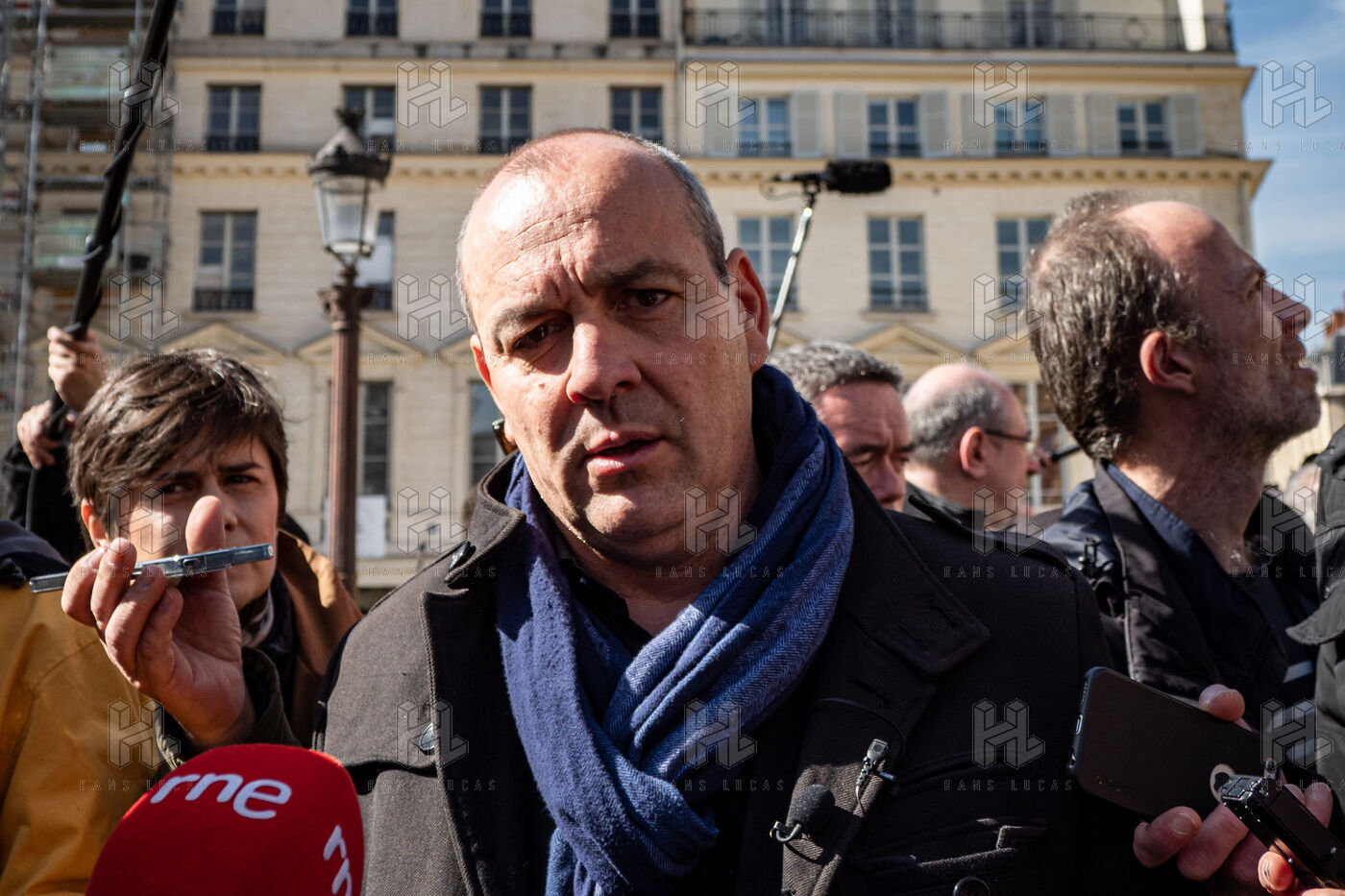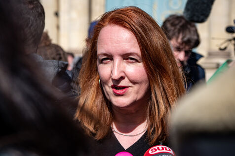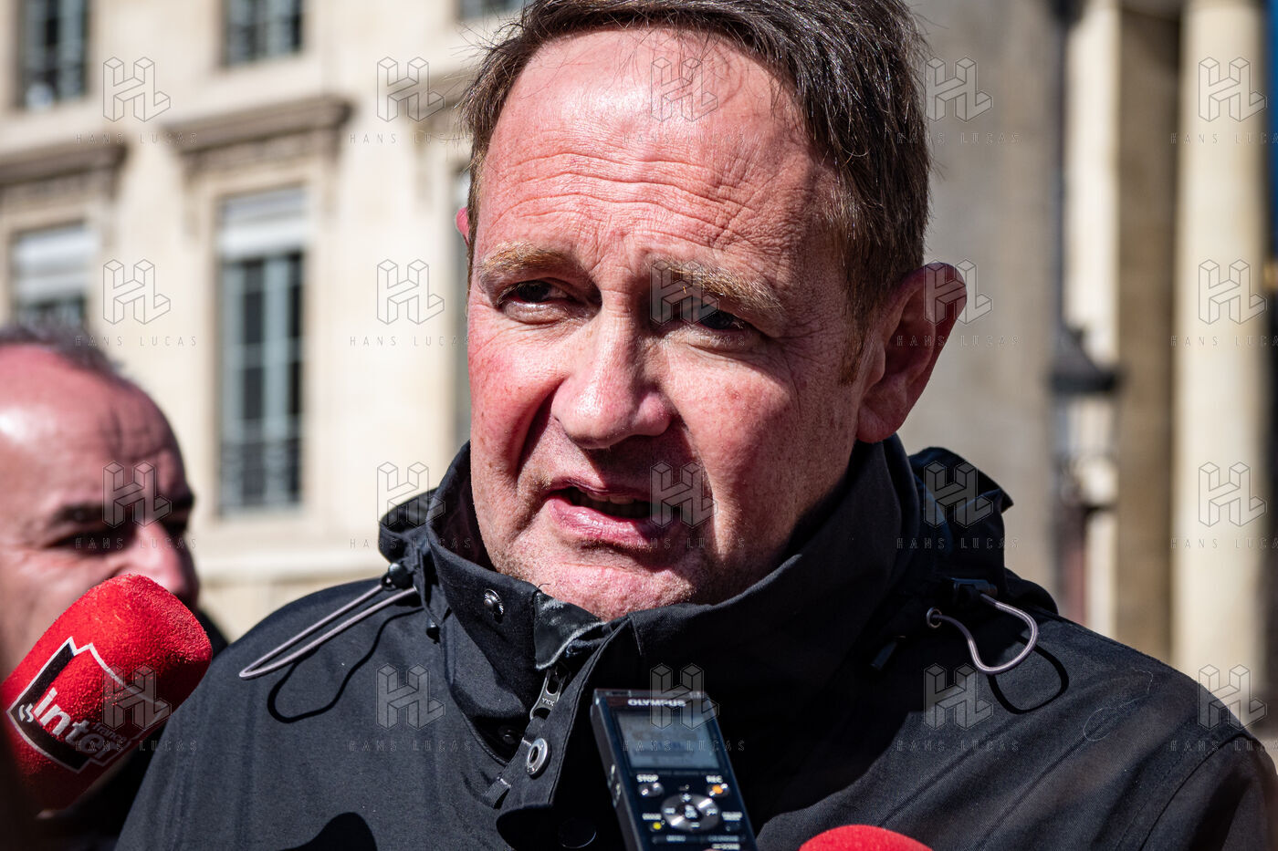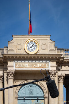 Conférence de presse des représentants syndicaux devant l'assemblee nationale avant l'annonce du 49-3.