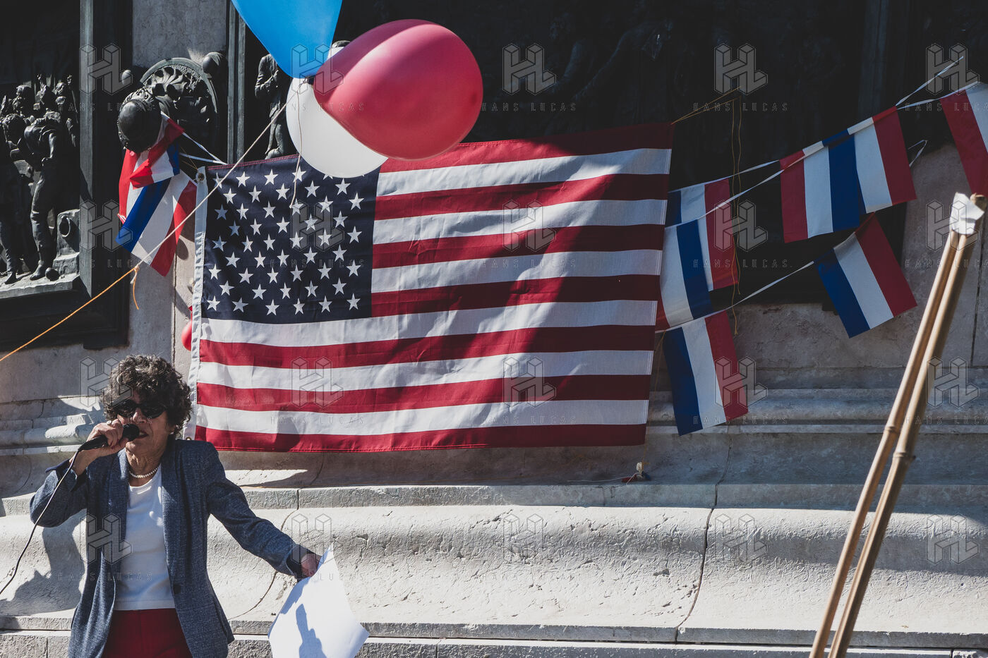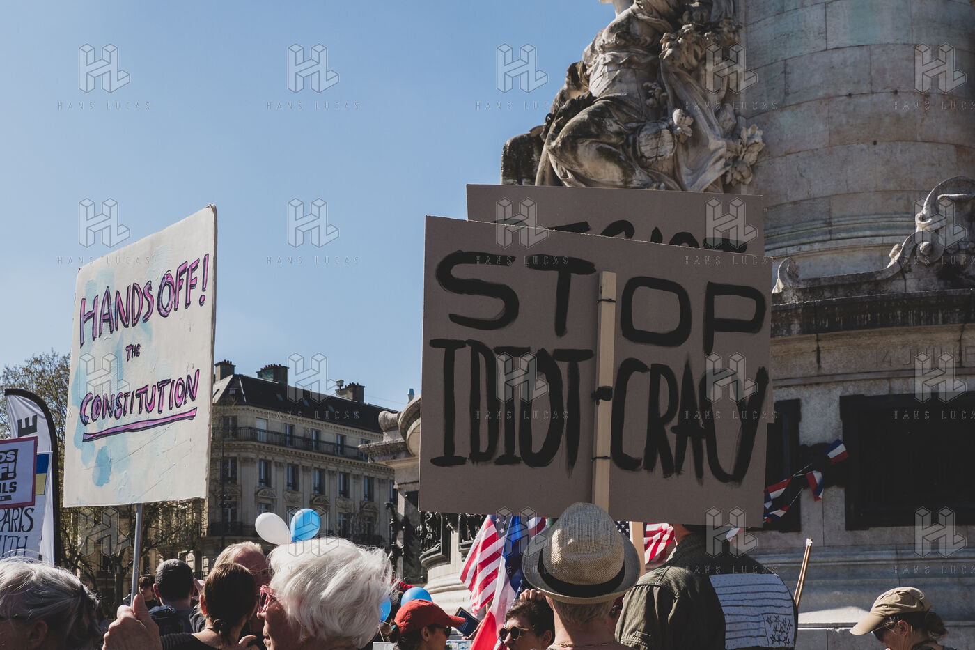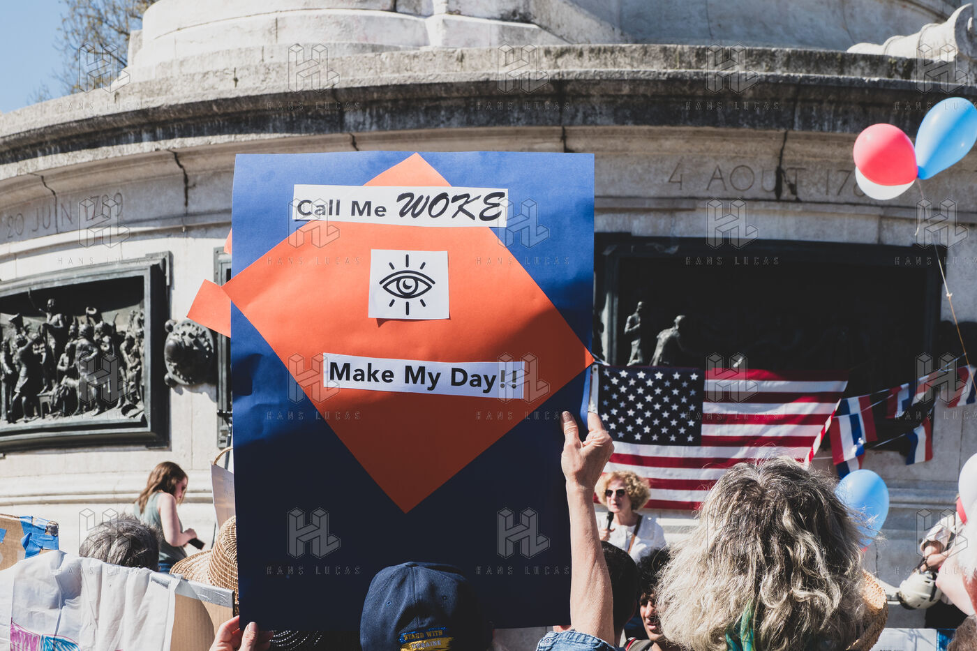 Rassemblement "Hands Off" en écho aux manifestations attendues aux USA ce jour, les Américains de France se sont rassemblés place de la République contre la politique de Donald Trump.