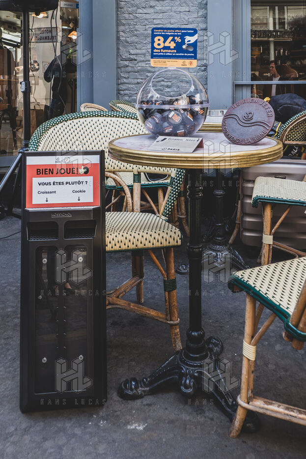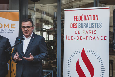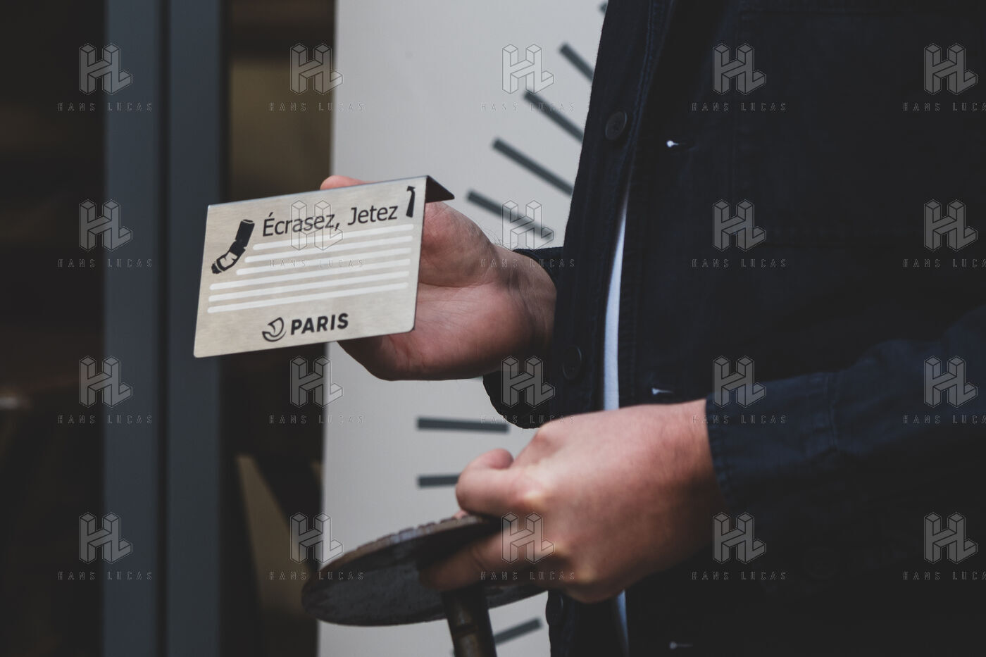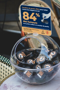 Paris City Hall unveils its new system for combating cigarette butt litter. In the presence of Antoine Guillou, deputy mayor in charge of public space cleanliness, Philippe Alauze, President of the Federation des buraliste d'ile de France and Jonathan Decottignies, ALCOME Operations Director. Between 4 and 5 million cigarette butts are thrown into the streets of Paris every day, a scourge that has a major impact on the environment and urban cleanliness.