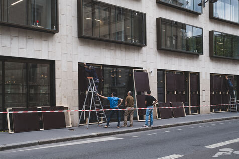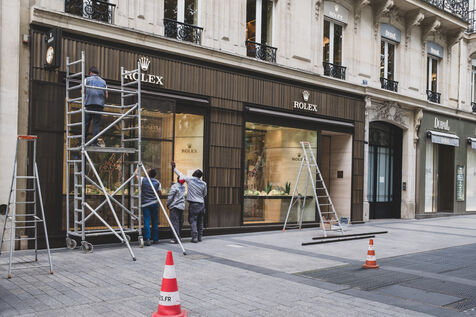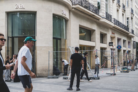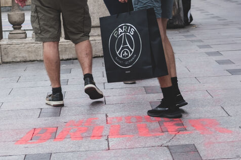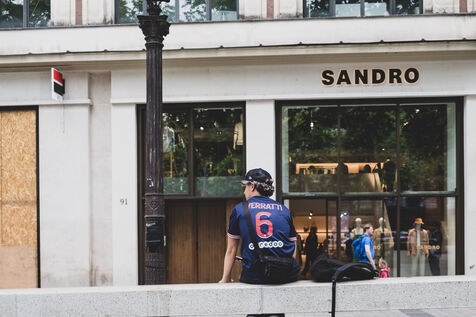 Jour J, les Champs Elysées se préparent pour le match du PSG en finale de la Champions League. Les boutiques protègent leurs vitrines, les supporters arborent leurs maillots.