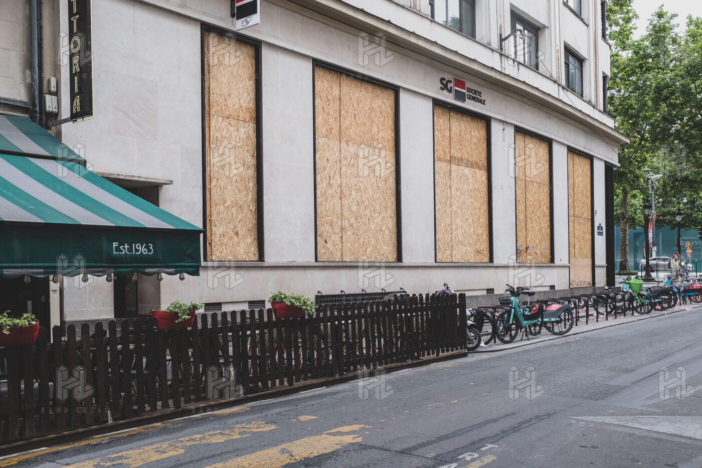 D-Day, the Champs Elysées get ready for PSG's match in the Champions League final, with stores protecting their windows and fans wearing their shirts.