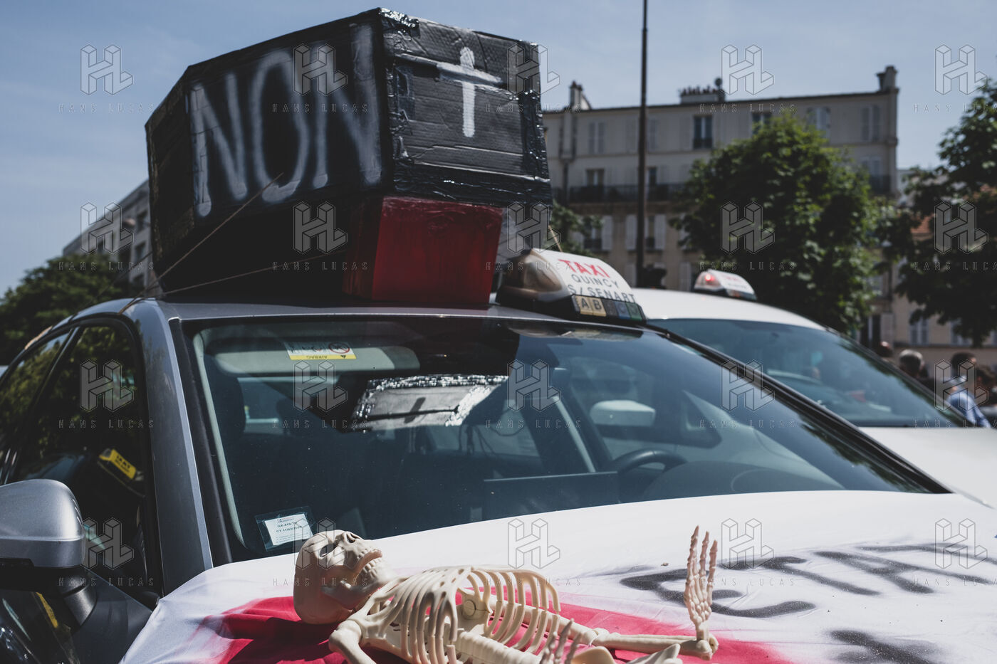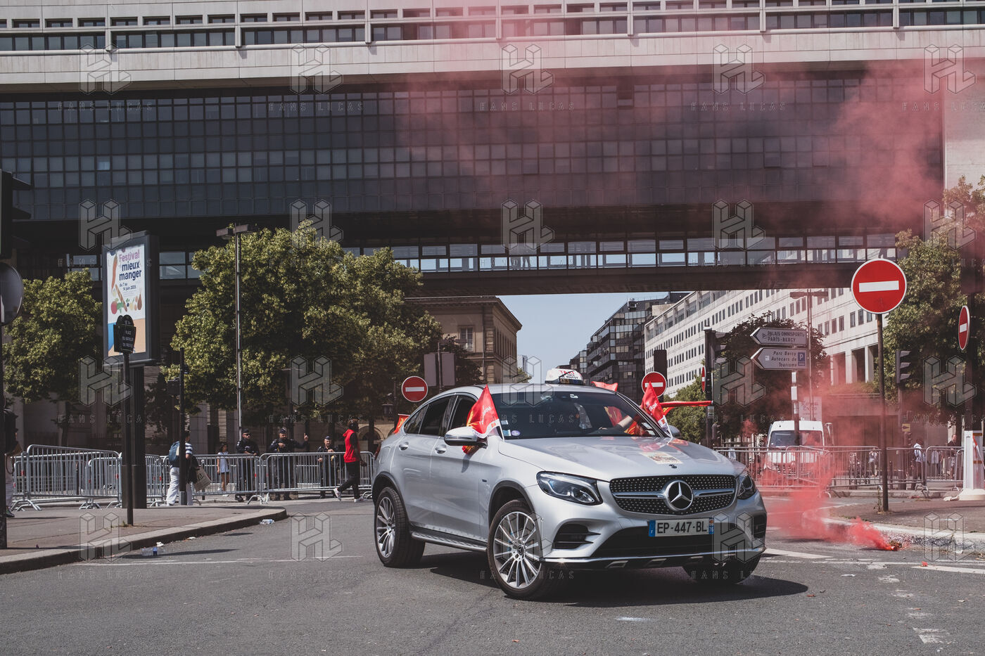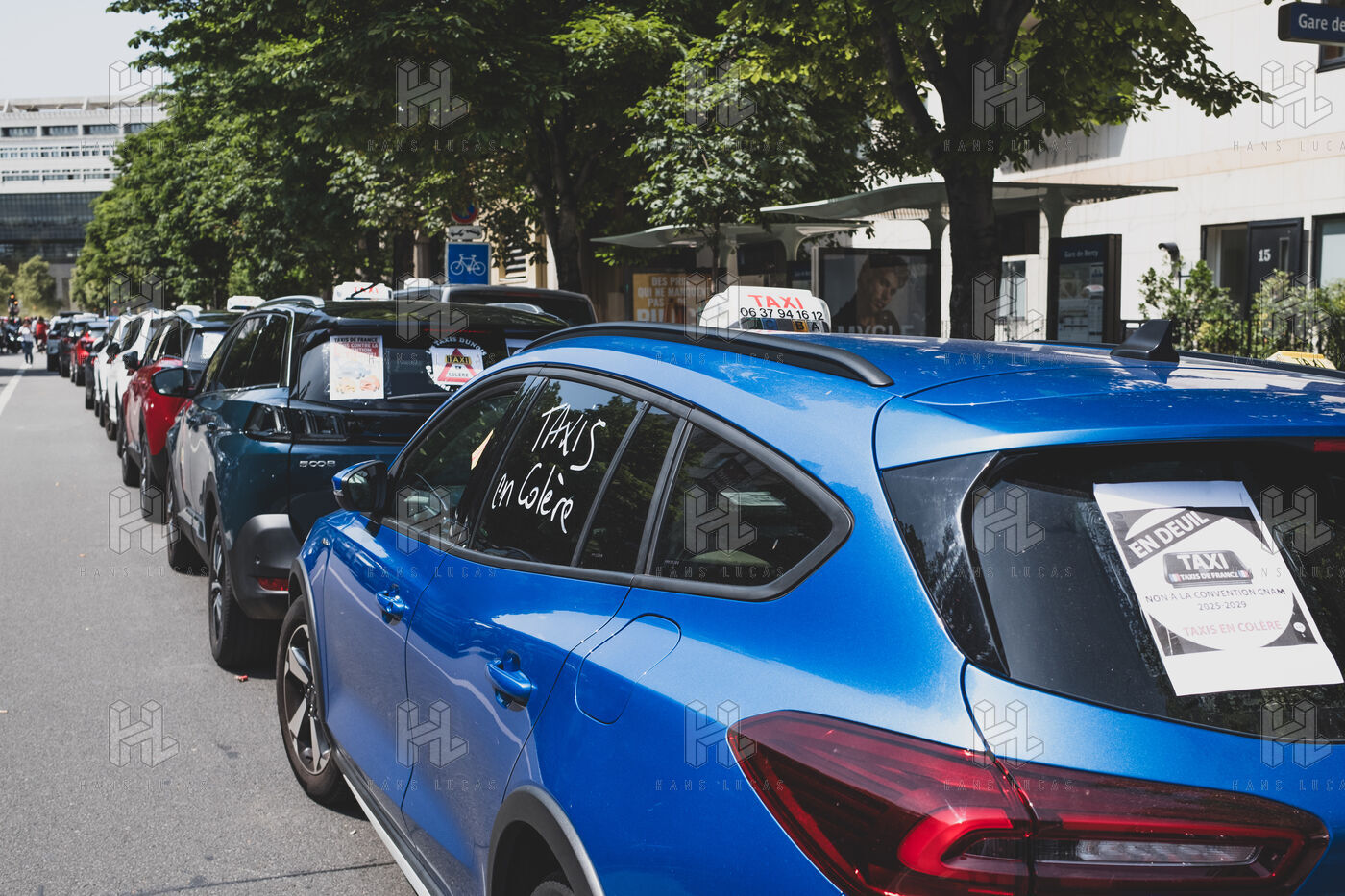 Cab drivers are staging another protest against the new CNAM agreement, blocking streets and avenues in front of Bercy and the Ministry of the Economy.