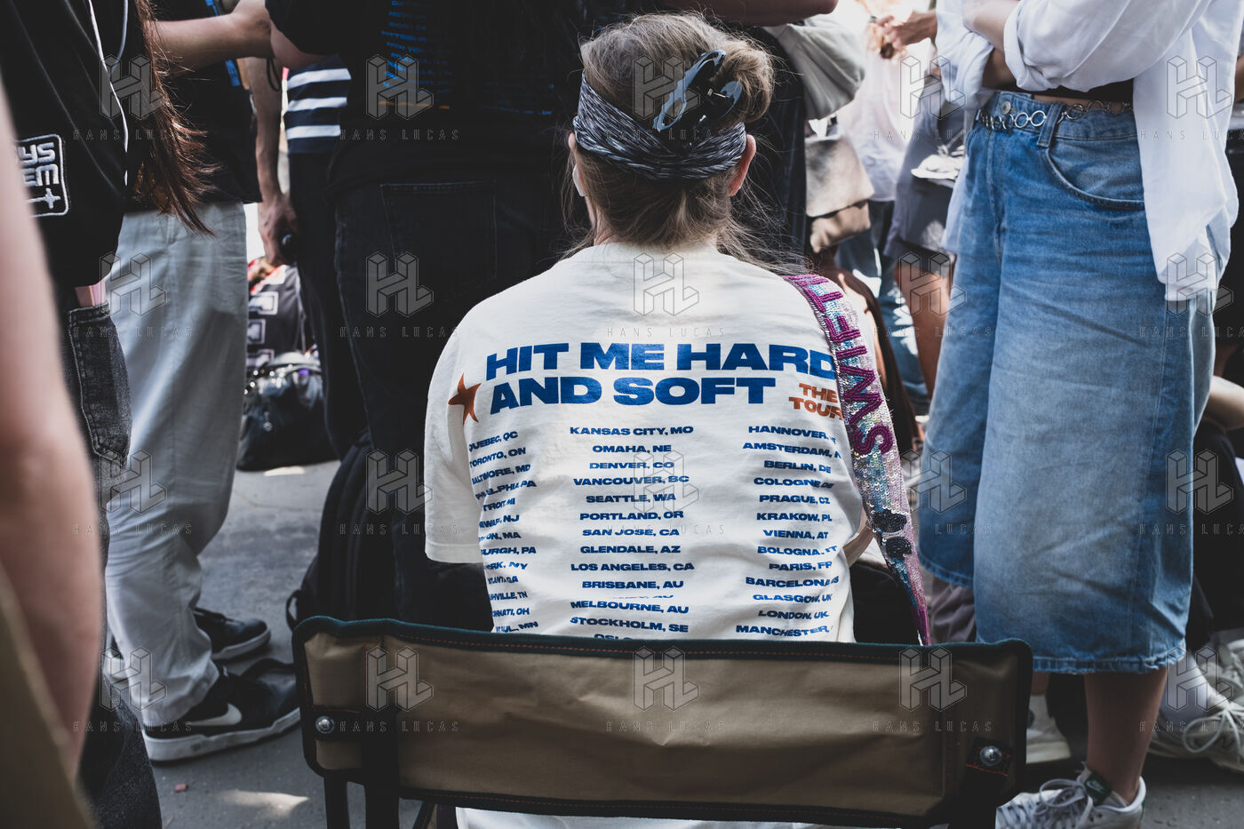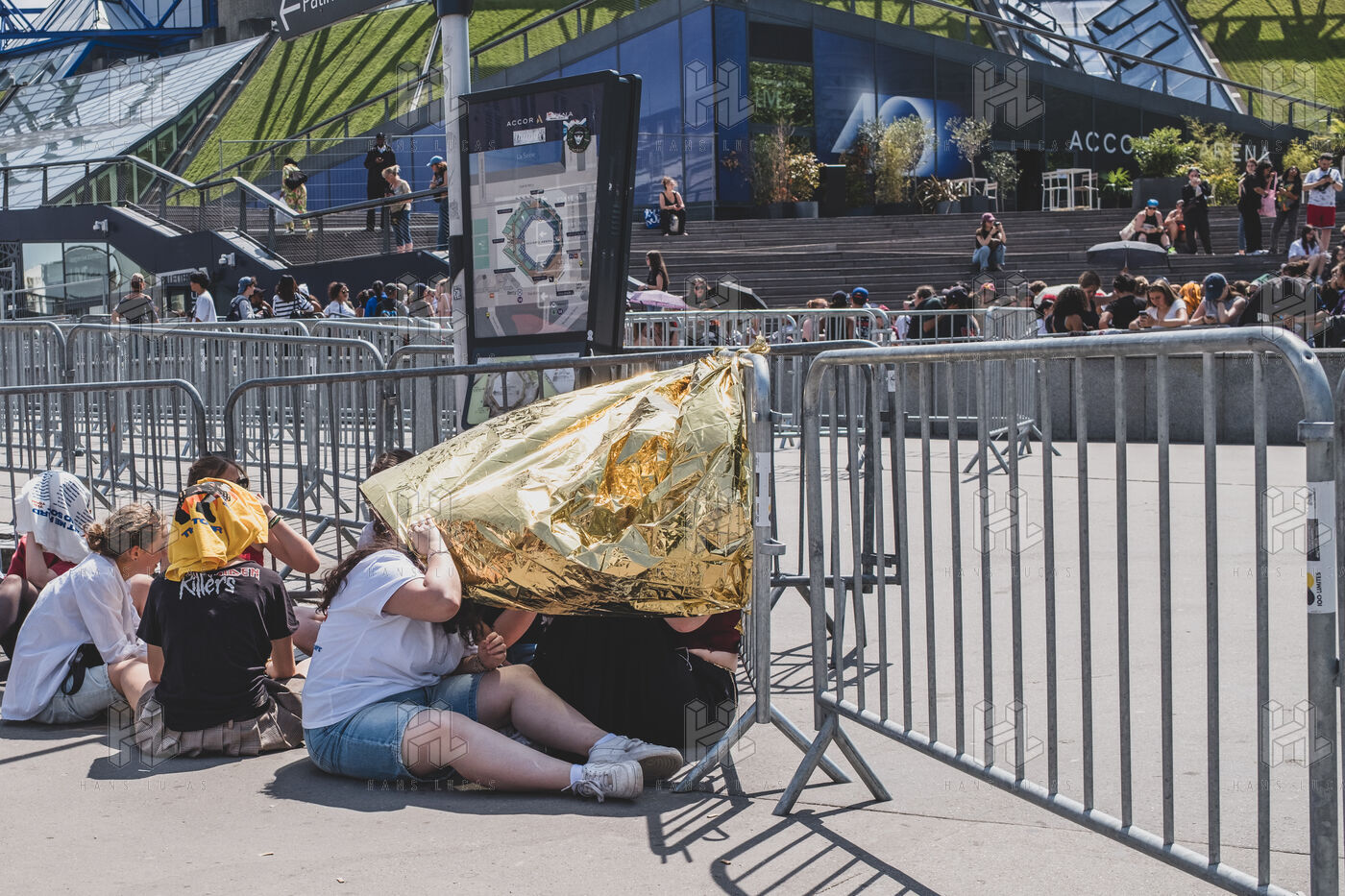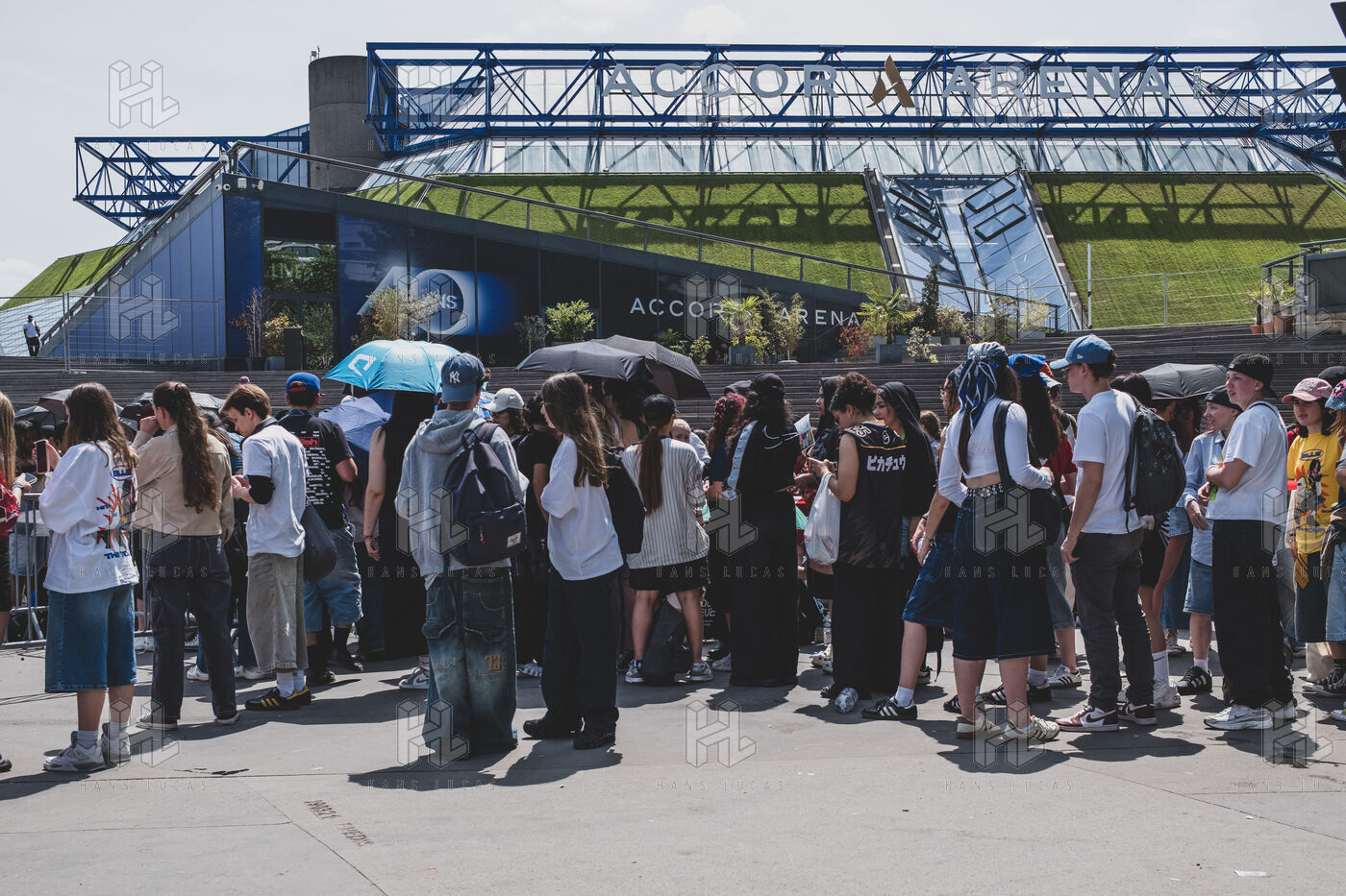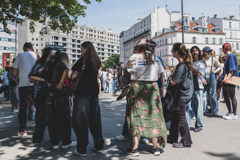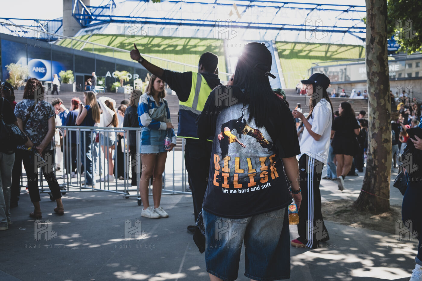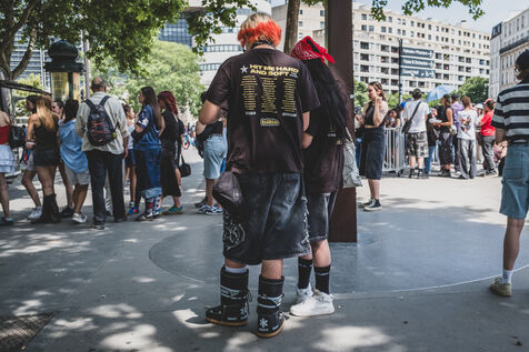 Illustration des fans de Billie Eilish rassemblés devant l’Accor Arena Bercy à Paris le 11 juin 2025 avant son concert. Tenues inspirées de l’artiste ou a son effigie attendent l’un des plus grands événements musicaux de l’année.
