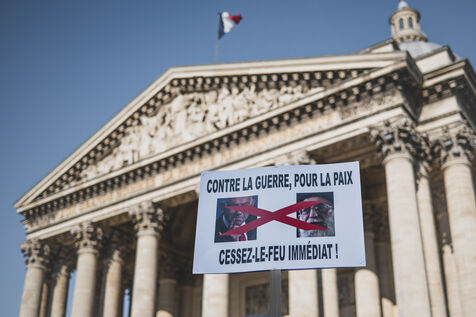 Rassemblement pour la paix au proche et moyen orient en présence de deputes LFI, La France Insoumise, PS, Parti Socialiste et EELV, Europe Ecologie les verts après les bombardements entre Israel et l'Iran.