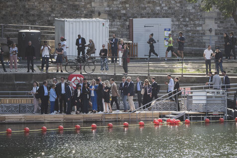 In the presence of IOC President Kirsty Coventry, Tony Estanguet and Sports Minister Marie Barsacq, Anne Hidalgo, Mayor of Paris, honors the great markers of the Olympic legacy on the Pont Saint Louis.