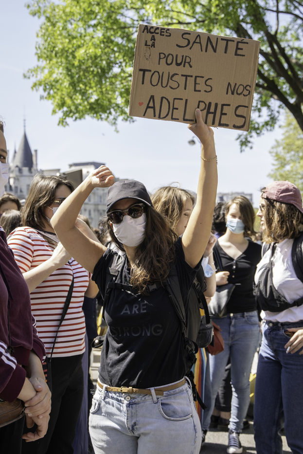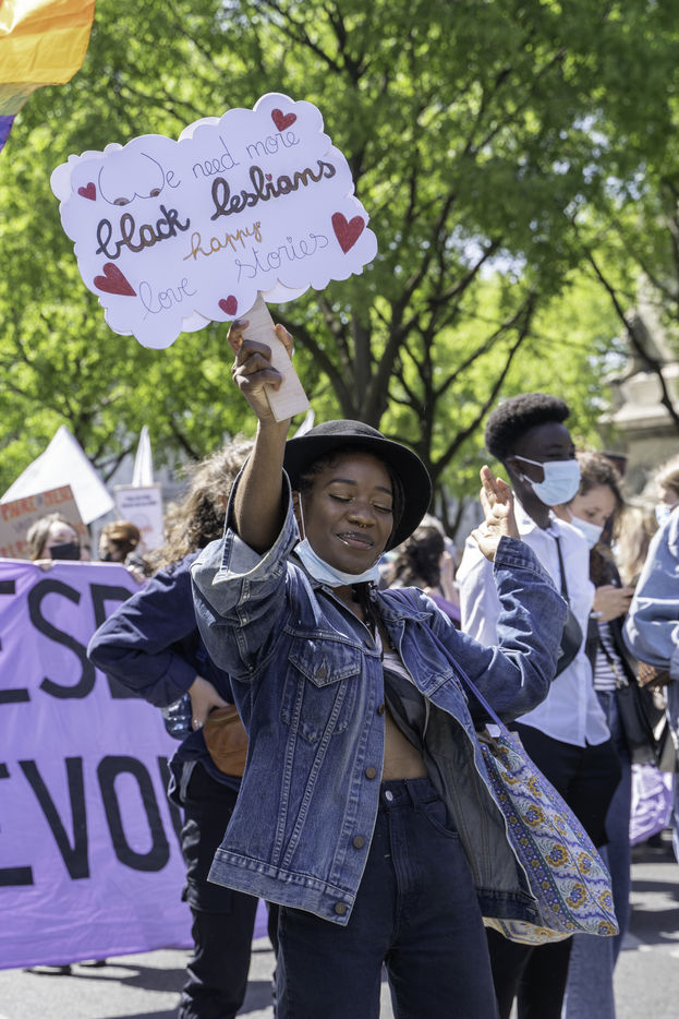 Première marche des lesbiennes à Paris, contre la lesbophobie et pour la PMA pour toutes.