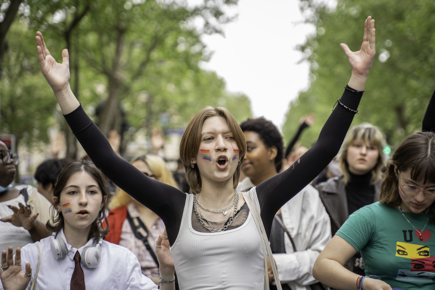 The second lesbian march took place in Paris, from Nation to Place de la République. Its purpose is to denounce the rise of fascism and thus oppose racism, transphobia and lesbophobia. The demonstrators demand the PMA unconditionally and free for all. As well as real support for survivors of conversion therapy and aid from the French state for LGBTI asylum seekers with equal treatment of requests, regardless of the country of origin. They also call on the government to act against discrimination, particularly for sex workers, disabled people and prisoners.