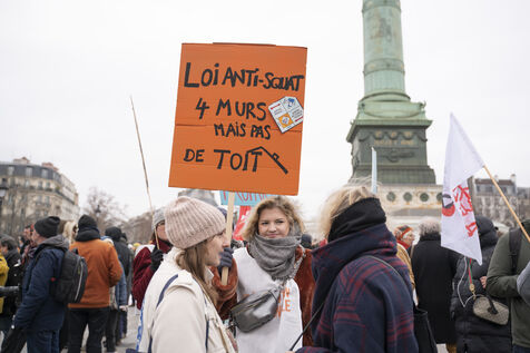 Manifestation contre la loi Kasbarian, loi anti squat, qui est actuellement discuté au Sénat et qui envisage de punir plus sévèrement les squatteurs.