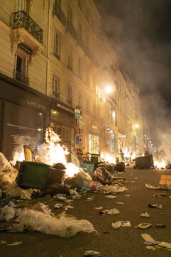 Débordement dans les rues de Paris contre la réforme des retraites, suite au recours d'Elizabeth Borne au 49.3 pour la réforme des retraites.