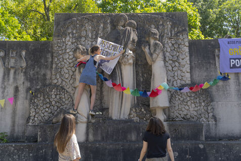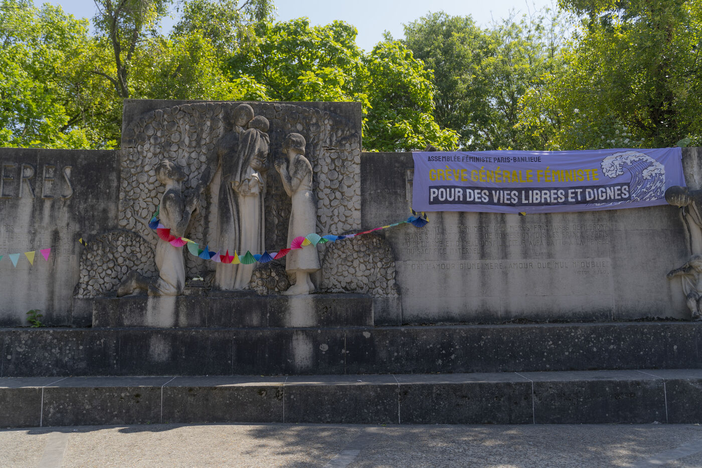 Rassemblement lors de la fête des mères au jardin du Monument aux Mères Françaises, organisé par l'AG Féministe Paris Banlieues.