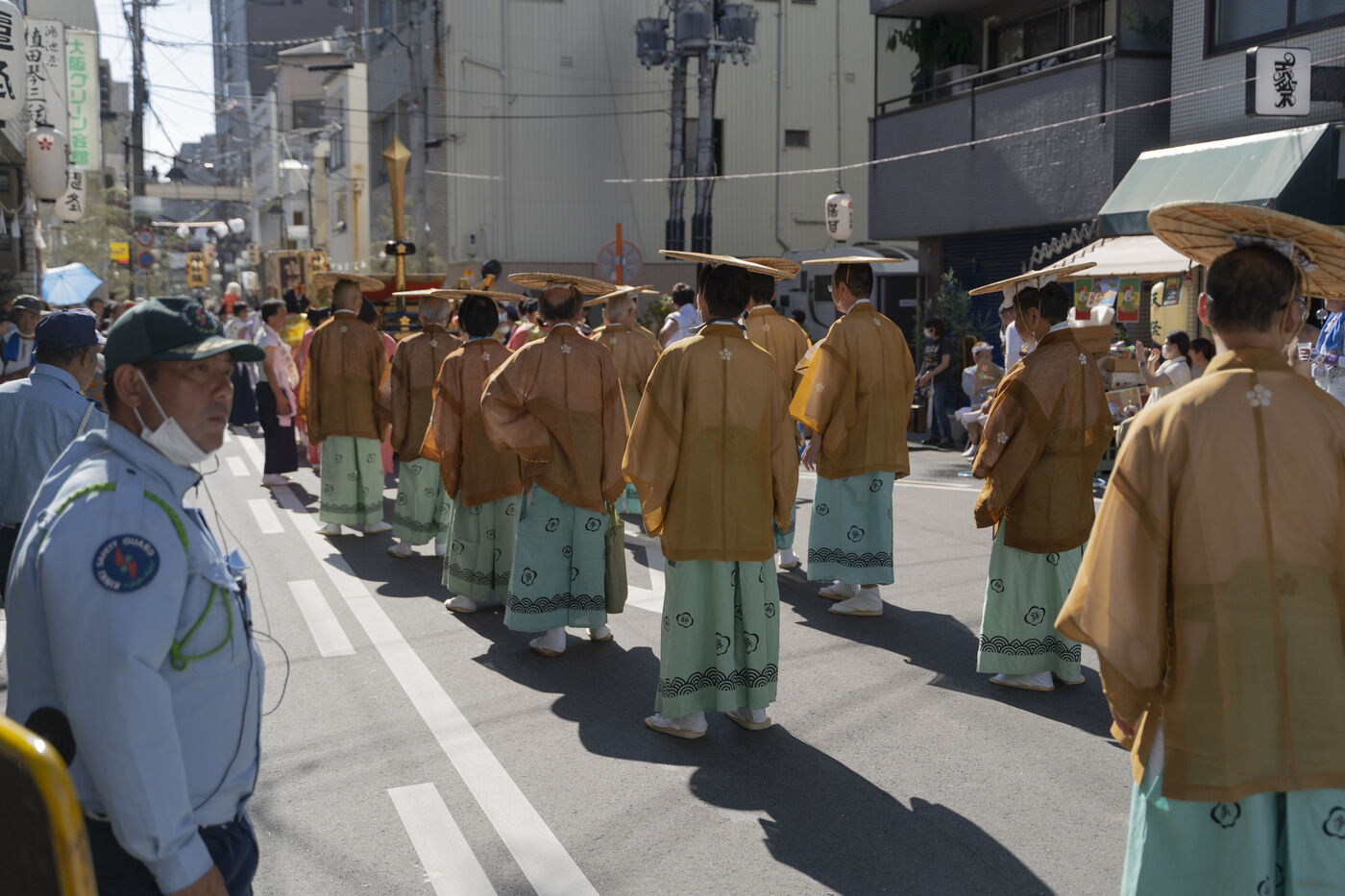 Le Tenjin matsuri est un festival important d'Osaka, après une procession, environ 3 000 personnes défiles en tenue d'époque dans les rues, suivis d'une parade nautique et d'un grand feu d'artifice d'une heure et demie.