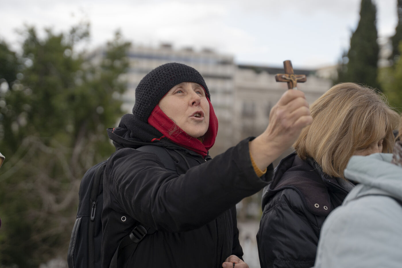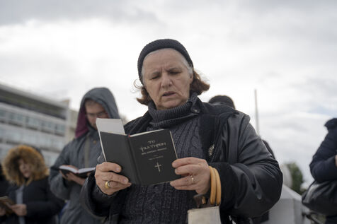 Protesters from orthodox religions met in front of Parliament where the law for the marriage of couples of the same sex was being debated at the same time.