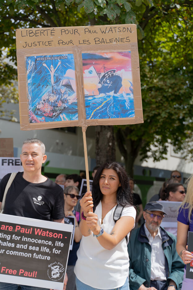 Rassemblement pour demander la libération de Paul Watson place de la Nation.