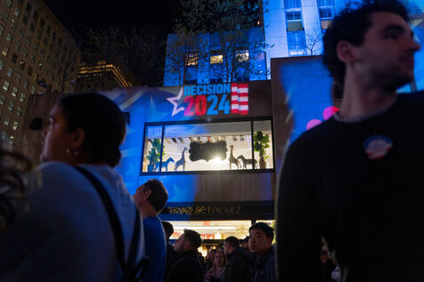 Toute la soirée, des écrans géants devant le Rockefeller Center ont diffusé les premiers résultats en direct. Des Américains, pour la plupart supporters de Kamala Harris, se sont rassemblés pour regarder les résultats.