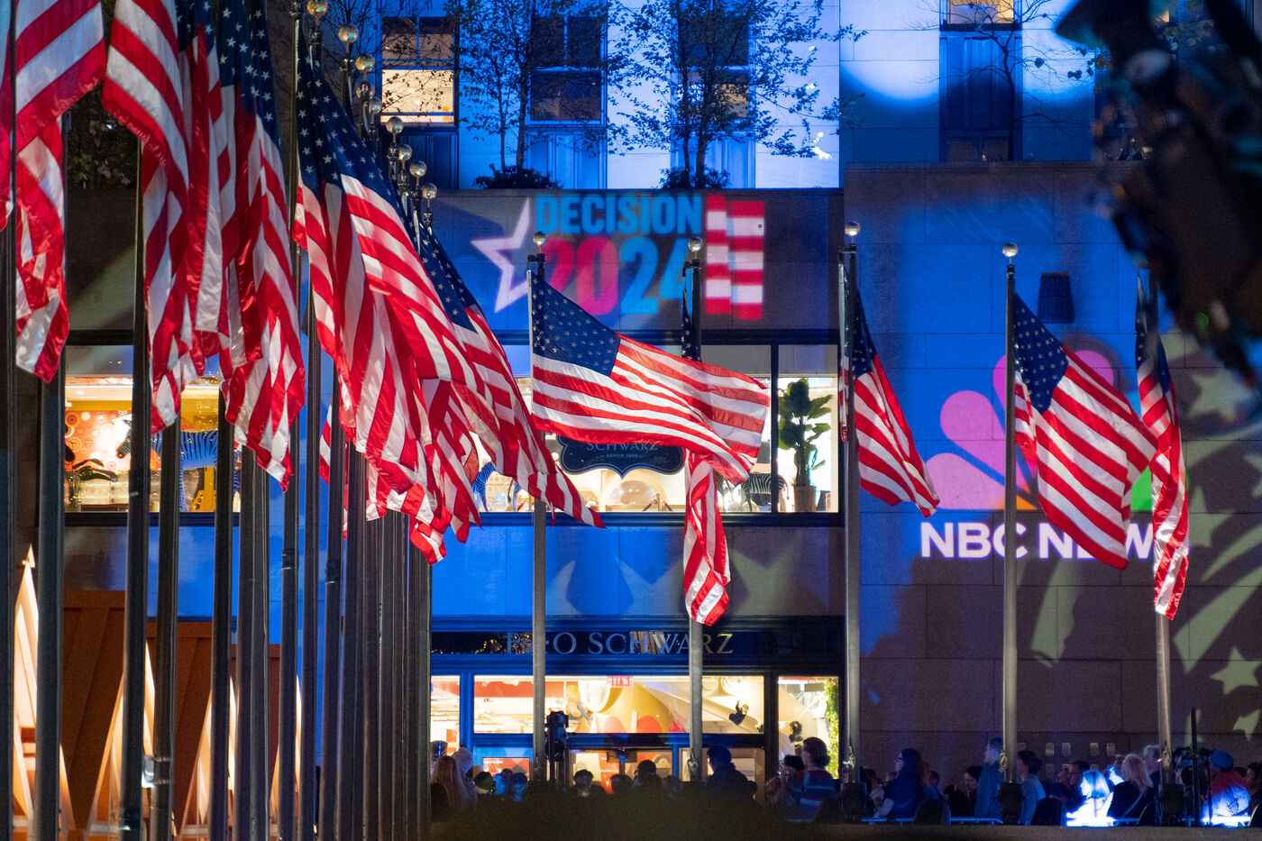 All evening, giant screens in front of Rockefeller Center broadcast the first results live. Americans, mostly supporters of Kamala Harris, gathered to watch the results.