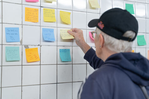 Following Donald Trump's presidential victory, Matthew Chavez, the organizer of "Subway Therapy," set up post-it notes in the Manhattan subway corridor (from 14th Street between Sixth and Seventh Avenues) for subway users to use in the hope of freeing them from some of their anxiety.