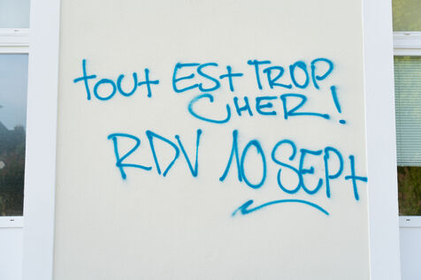 Graffiti reprenant l'appel à "Tout bloquer" le 10 septembre 2025 en France.
