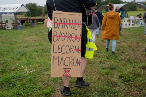 In Châteaugiron, a small town in the Ille-et-Vilaine department, individual activists organized a gathering near the Hyper U supermarket, and then held a demonstration on a main road in the town, following the "Block Everything" movement, on September 10th. They set up a camp near the road, which they called the "Village of the Outraged."