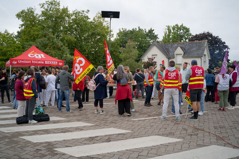 Assemblée Générale, devant le Centre Hospitalier Guillaume Régnier, des professionnels de la santé, suivant le mouvement "Bloquer tout", du 10 septembre.