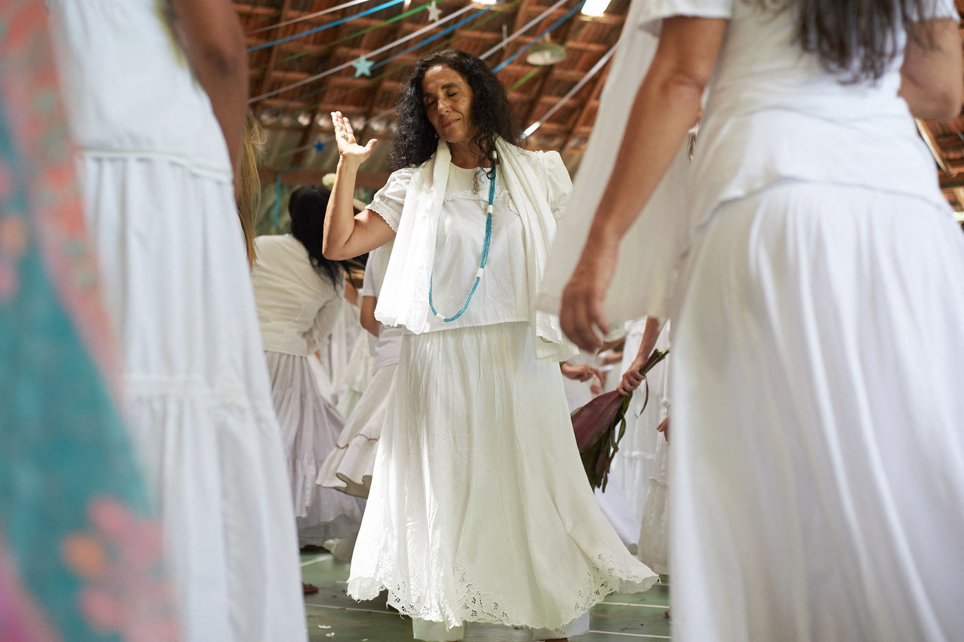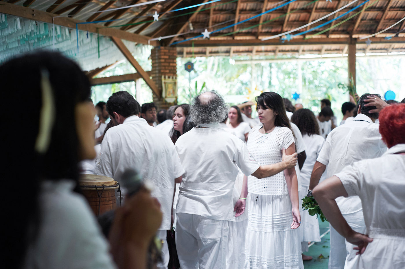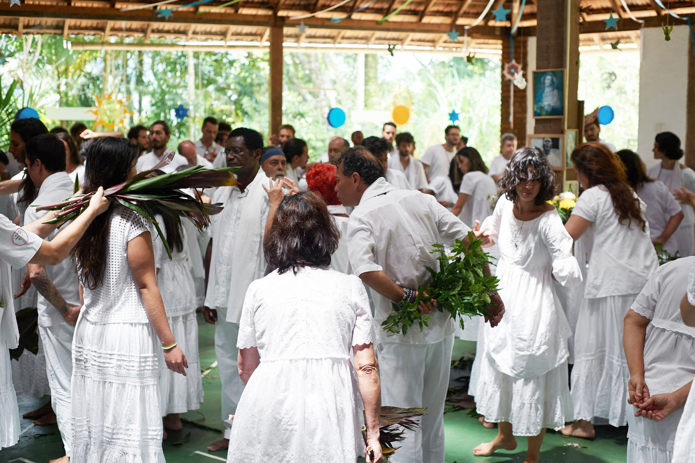 Dans les cérémonies du Santo Daime, tout le monde chante et danse au rythme de la musique en costume immaculé, ce qui rend le spectacle magnifique à regarder. Vous pouvez même sans prendre de Daime vous retrouver comme aspiré dans l'énergie de joie et d'amour émise durant la cérémonie.