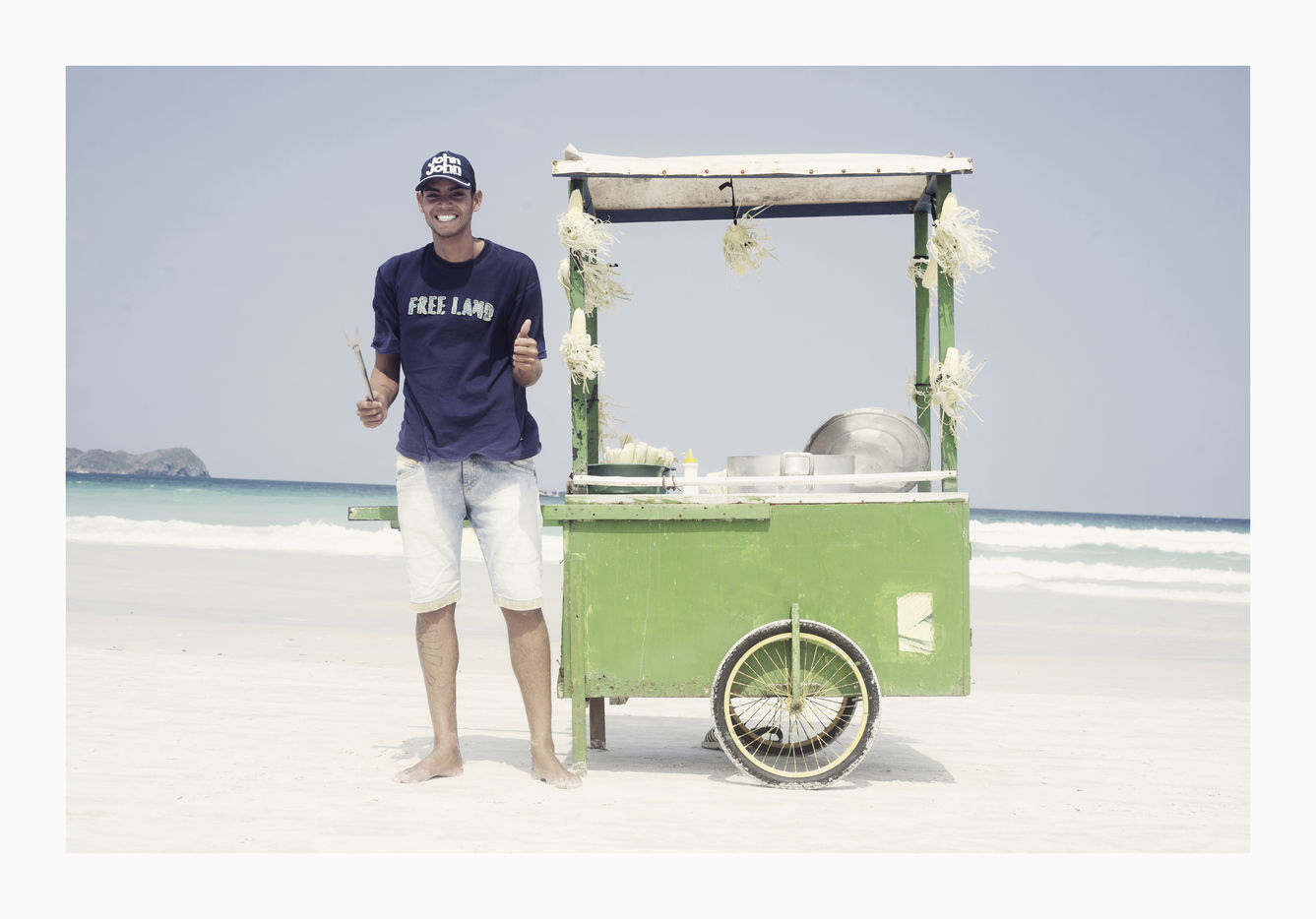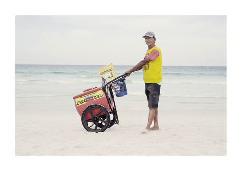 People on the beach only think about themselves and don't pay the workers any attention, as if they were just a part of the scenery. But they are not. Their « caddies » were so colourful and full of different stuff. So aesthetically perfect.