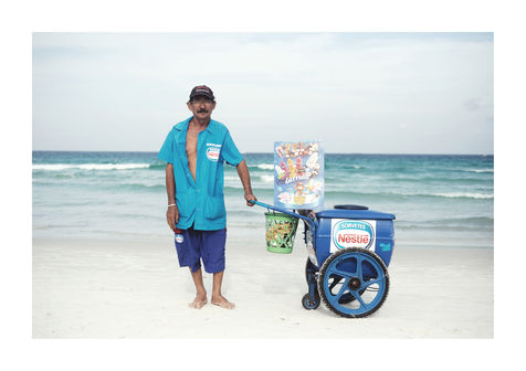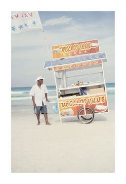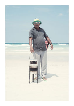 Praiabalhadores, a portoguese portmanteau of praia (beach) and trabalhadores (workers), is the curious coinage I adopted fir this documentary series cataloguing the beach vendors of Praia do Forte. This idyllic beach in Cabo Frio, a small town near Rio de Janeiro, sees an array of vendors touting their wares and refreshements, which was an irresistible draw for me. My work is always been shaped by a fascination with human relationship.