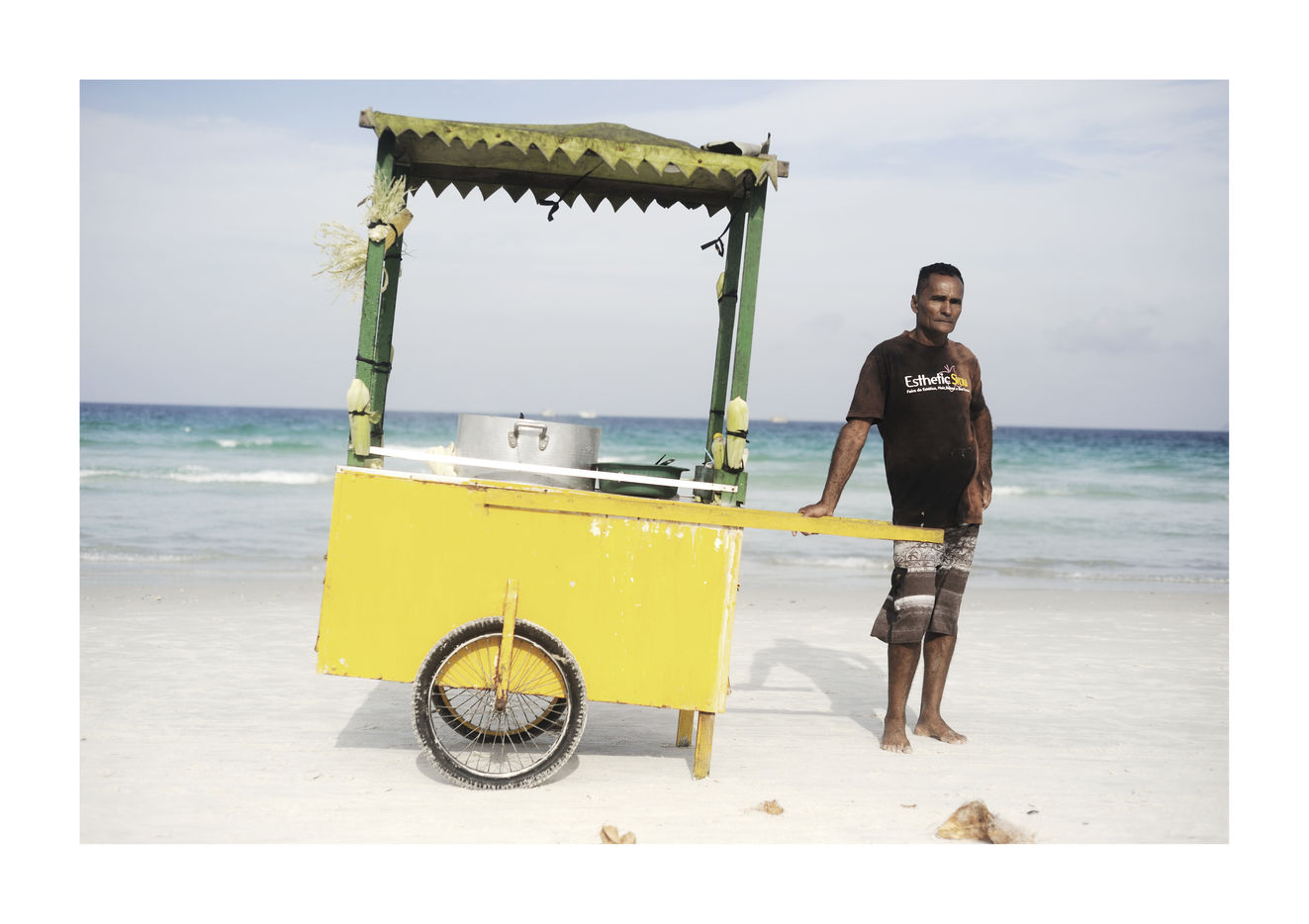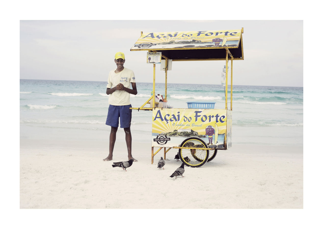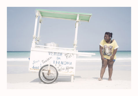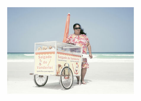 En me promenant sur l'immense plage au sable blanc de Praia do Forte, a Cabo Frio, j'ai fini par poser mon objectif plus sur les gens que sur les paysages, aussi magnifiques soient-ils. Et cela n'a pas manqué d?étonner Valmir, Talia ou Guilherme : si les photographes ne sont pas rares, aucun ne s'était encore intéressé à eux et à leurs chariots. En effet, au Brésil, les vendeurs ambulants font partie du paysage, que ce soit au bord des routes, au coin des rues ou même, comme je le découvrais, sur la plage.