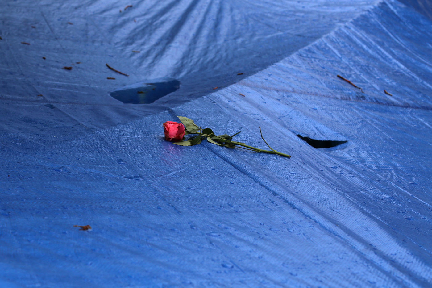 These multicolored tents encamped under oceans of tarpaulins, emerge in the few interstices of the remaining urban space. Despite the meteorological hostility of this month of May, epidemics of scabies or tuberculosis, and the accumulation of thousands of people on a restricted perimeter - the limits are always pushed back from one week to another, until the evacuation then synonymous with a beginning of care from the public authorities.