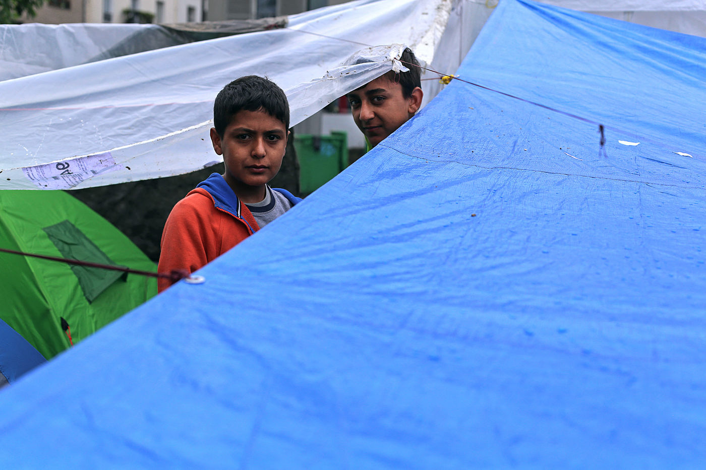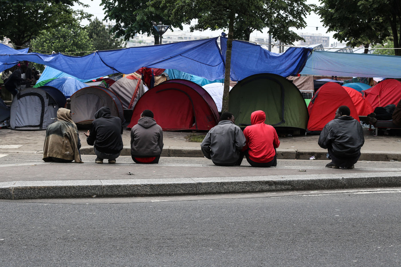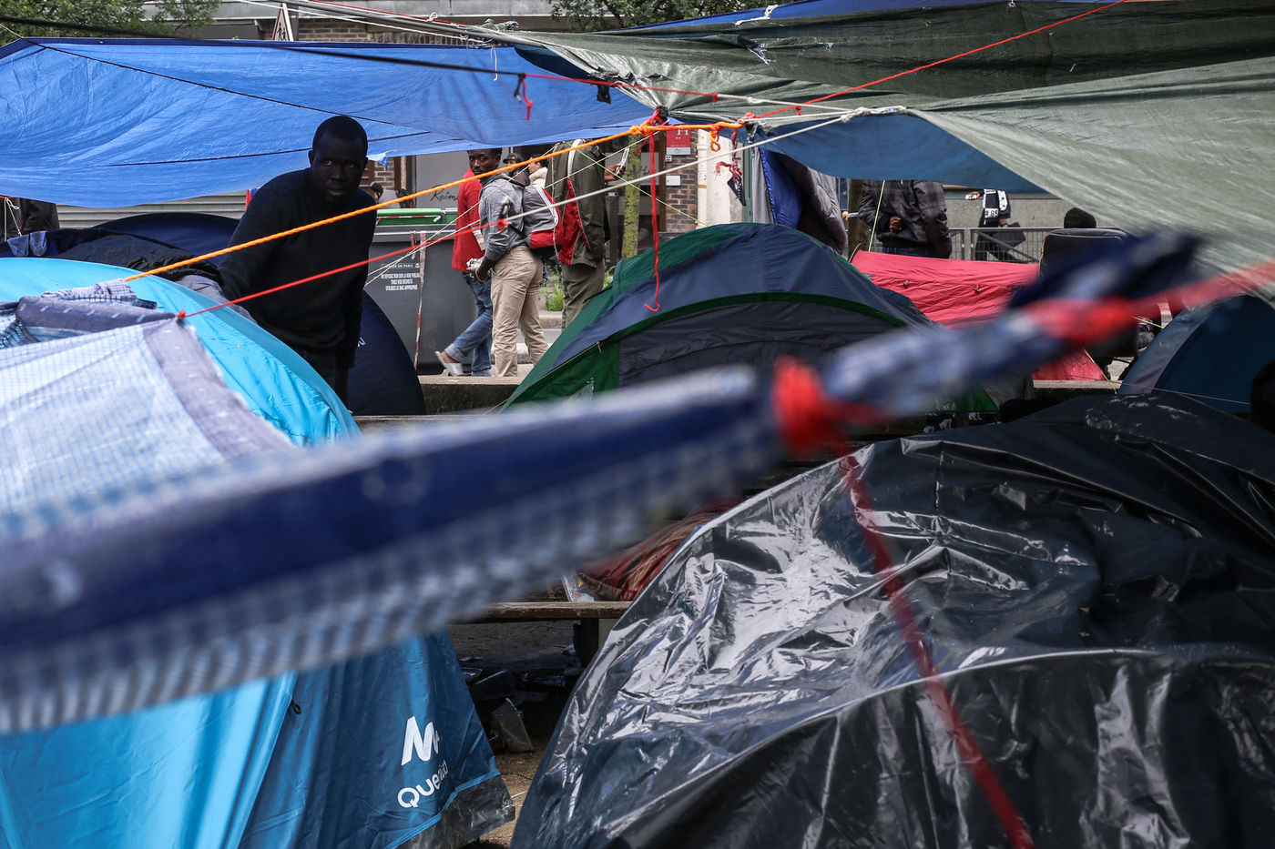 Ces campements de tentes multicolores abritées sous des océans de bâches, émergent ainsi dans les rares interstices de l'espace urbain restants. Malgré l'hostilité météorologique de ce mois de mai, les épidémies de gale ou de tuberculose, et l'entassement de milliers de personnes sur un périmètre restreint - les limites de la précarité sont toujours repoussées d'une semaine à l'autre, jusqu'à l'évacuation alors synonyme d'un début de prise en charge des pouvoirs publiques.