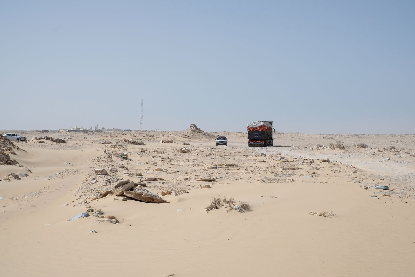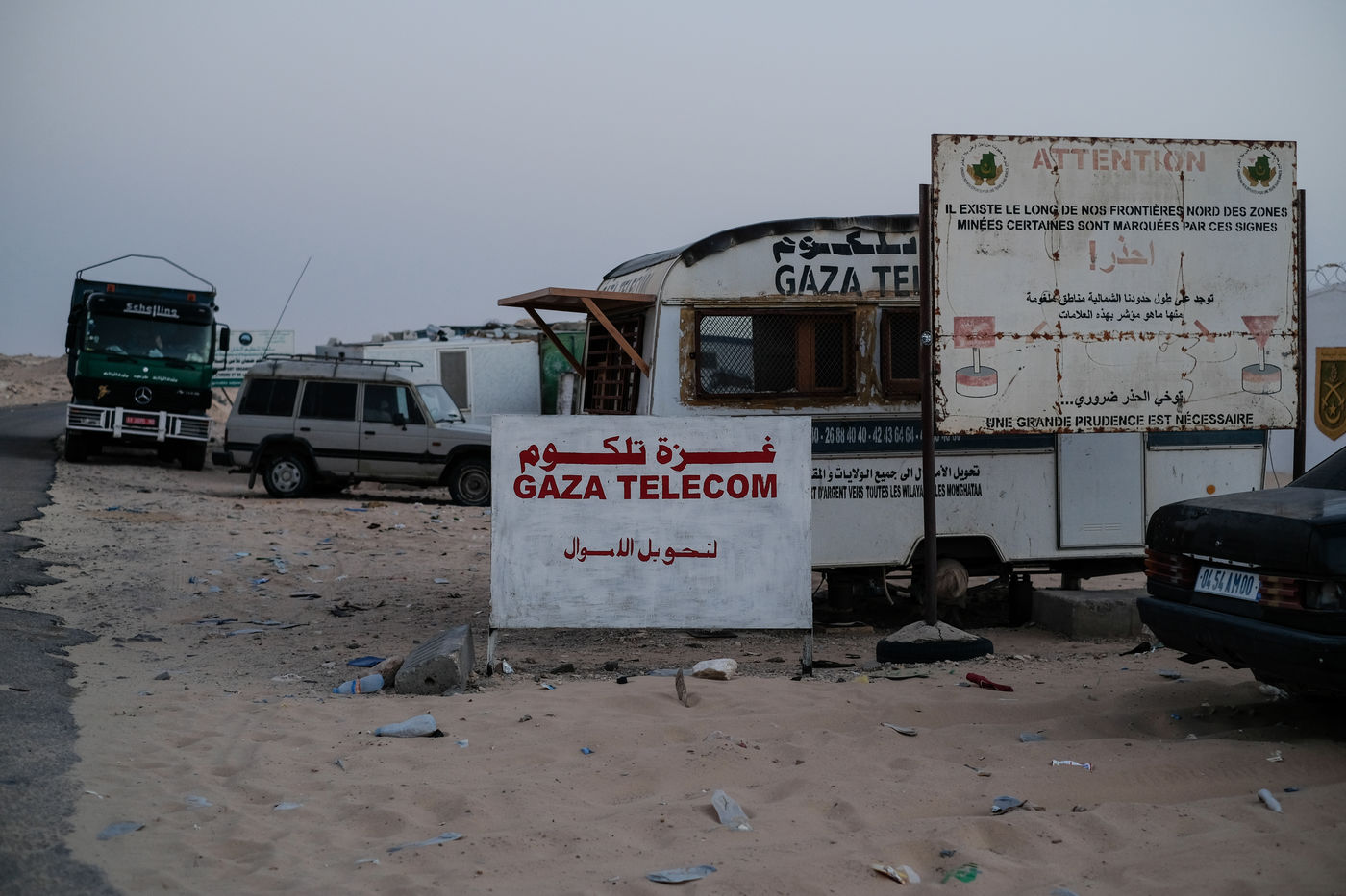 Since the 1991 cease-fire, is considered as a buffer zone this space of 5 kilometers between the Mauritanian border post and the border post of the Moroccans (behind their 2700km military wall). The cease-fire agreement provides a number of restrictions for this area.