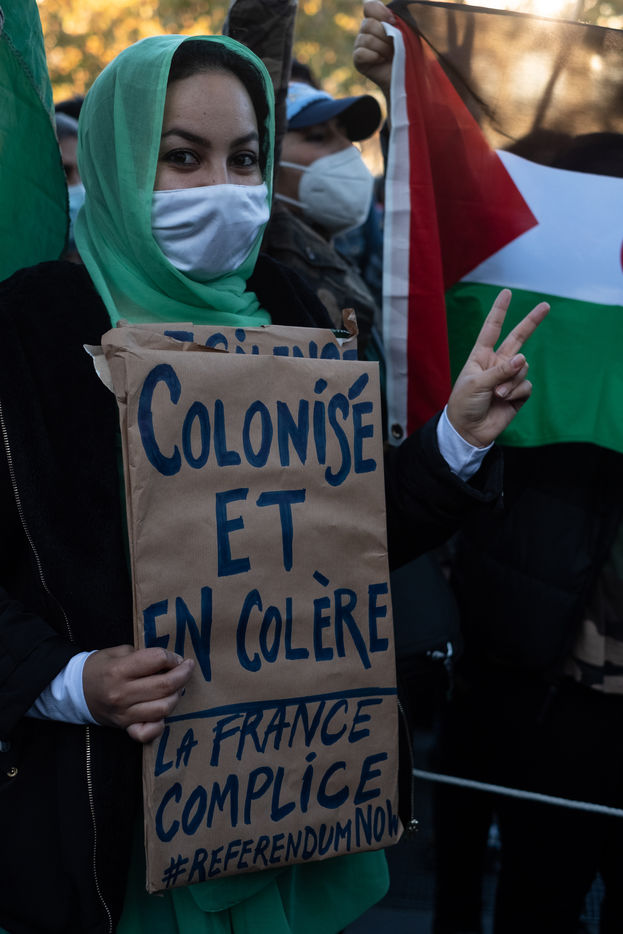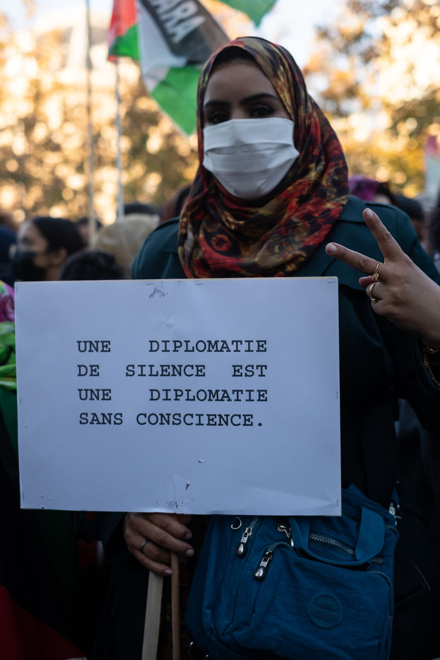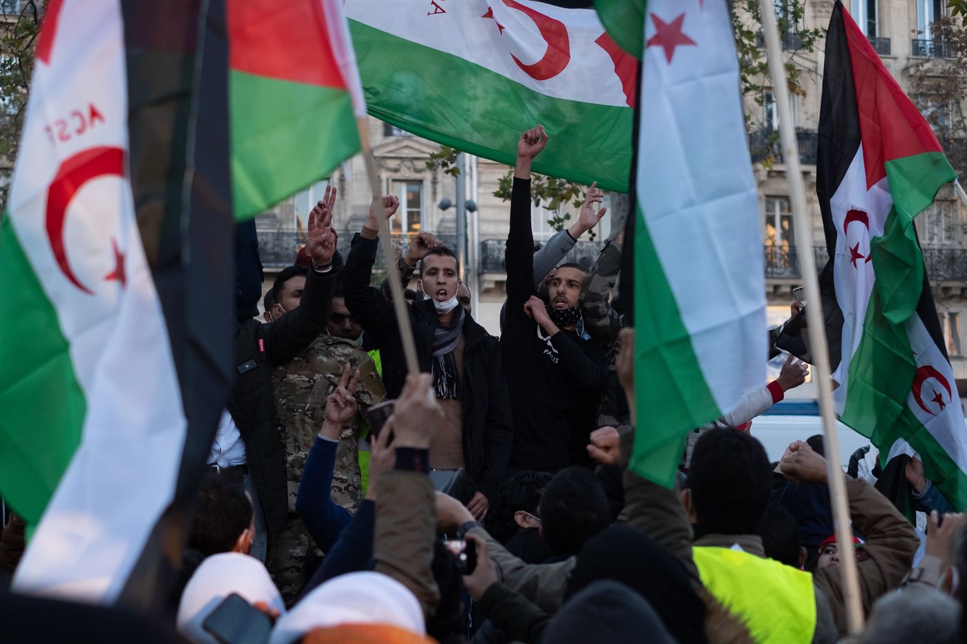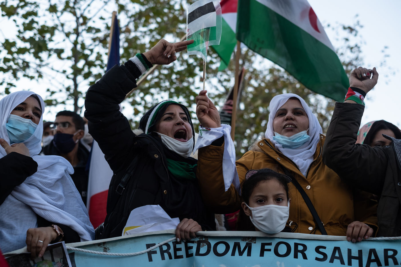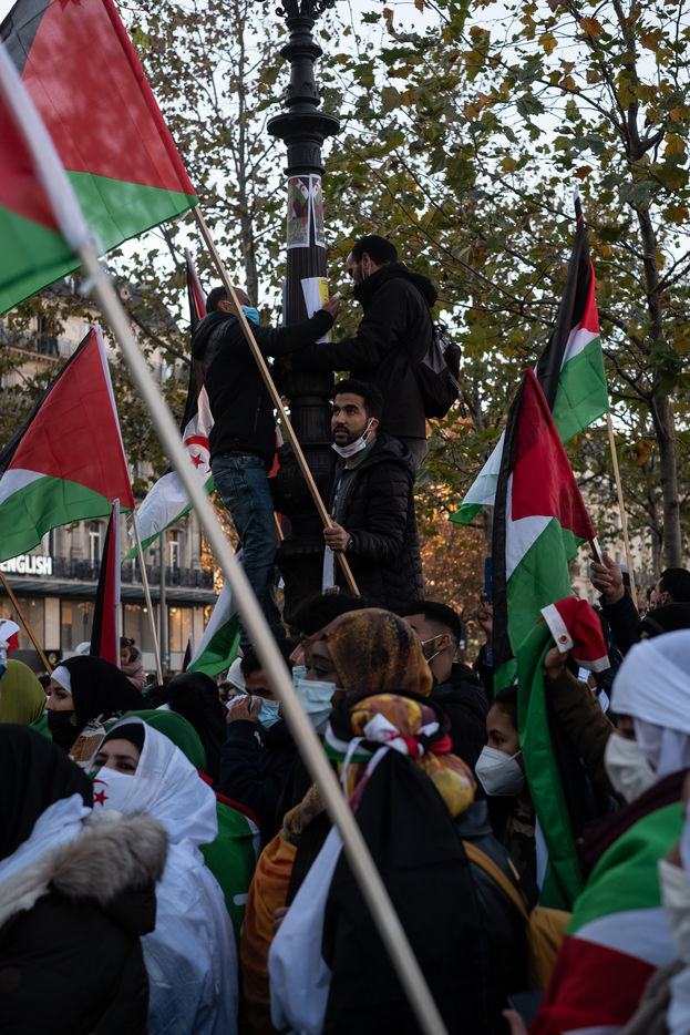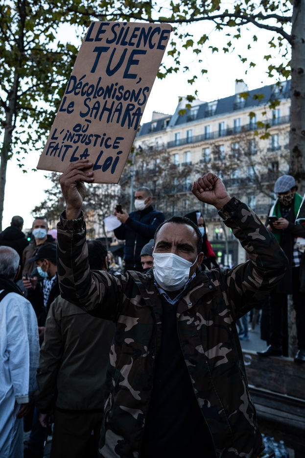 Demonstration on the Place de la Répubique on November 28, 2020, to express the rights of the Saharawi people to self-determination in a context of resumption of the armed conflict between Morocco and the Polisario Front. This gathering is also an opportunity to highlight the absence of human rights monitoring mechanisms in the territory occupied by Morocco, and the inaccessibility of the occupied territory to journalists, while the repression against civilians has increased since the November 13.