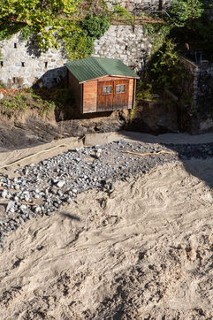 La tempête Alex a engendré beaucoup de dégats dans la vallée de la Tinée. A Clans, les routes sont coupées et plusieurs maisons sont innondées.