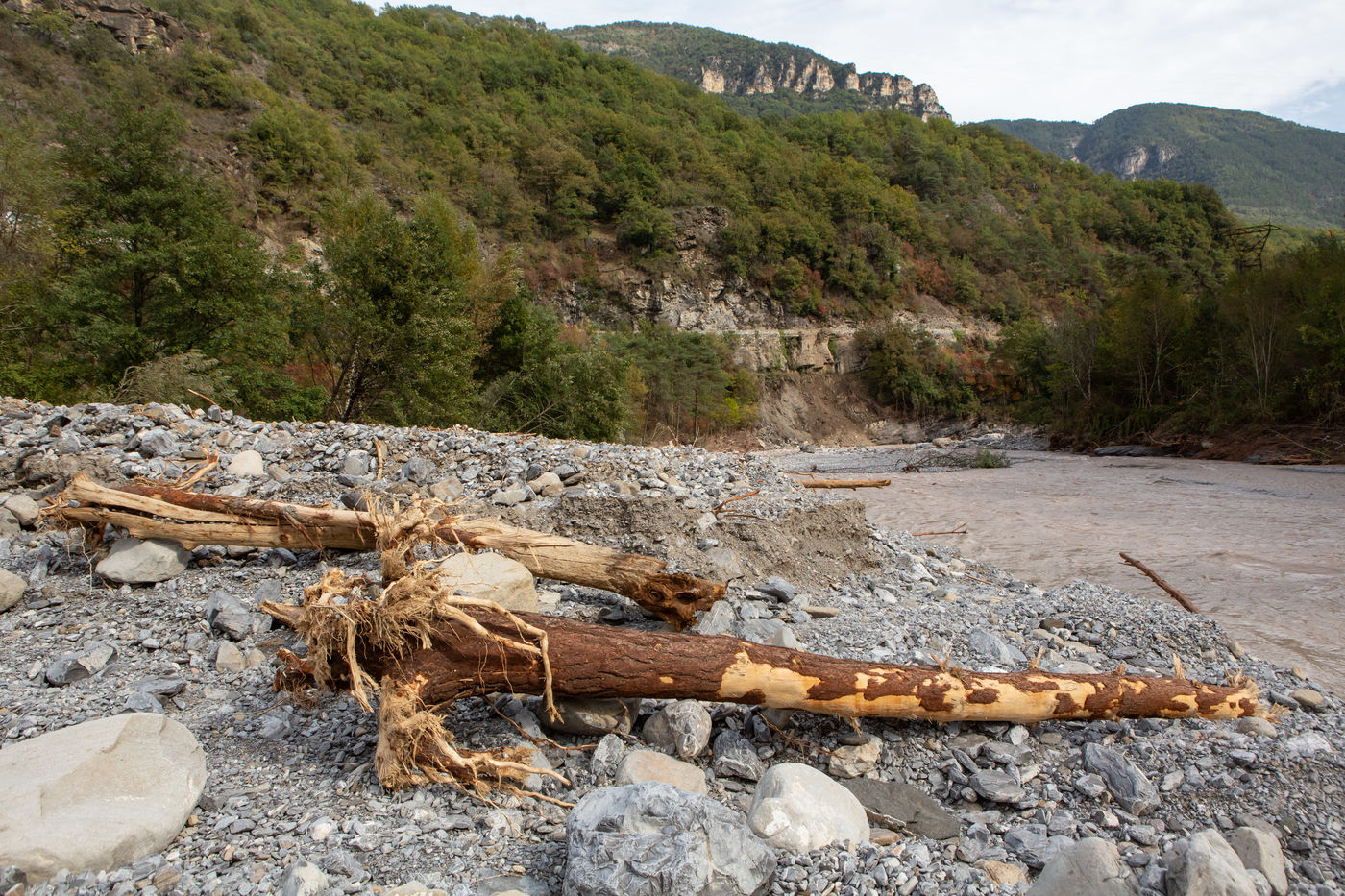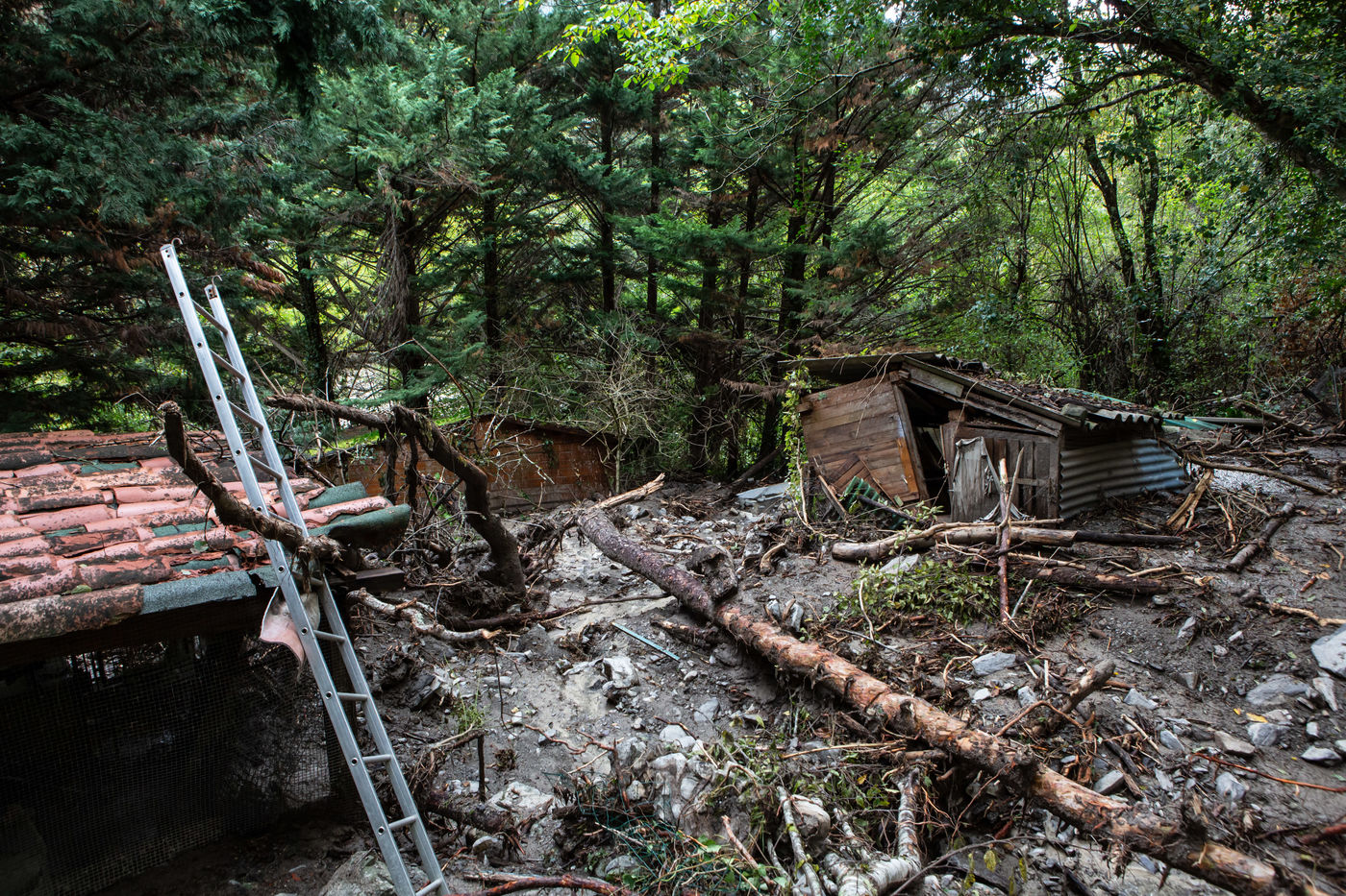 Dégats de la tempête Alex dans la vallée de la Tinée.